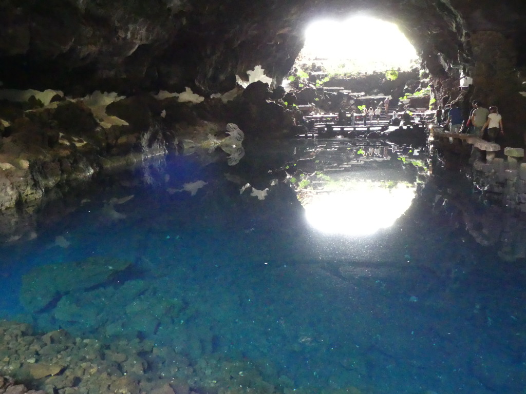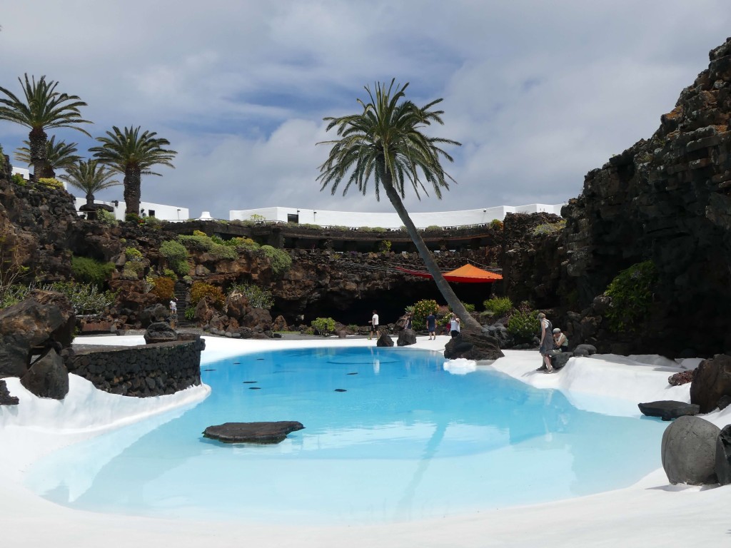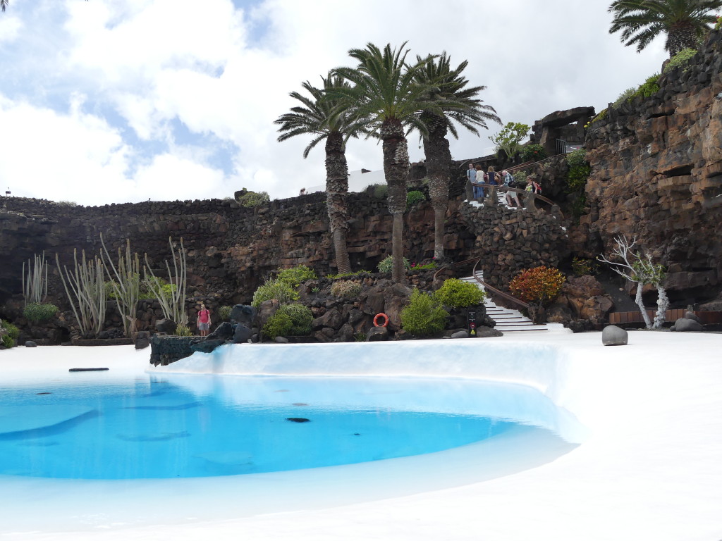 Apparaît ensuite le Jameo Grande qui s’ouvre sur une superbe piscine blanche aux eaux d’un bleu inoubliable, elle même entourée de palmiers, figuiers, cactus ainsi que de roches volcaniques.