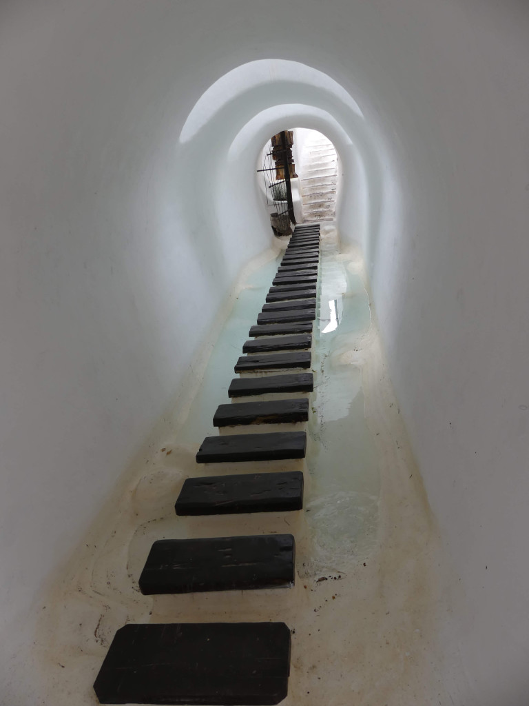 Des galeries y relient entre elles 5 bulles de lave, elles même aménagées en salons aux teintes diverses (rouge, blanche).