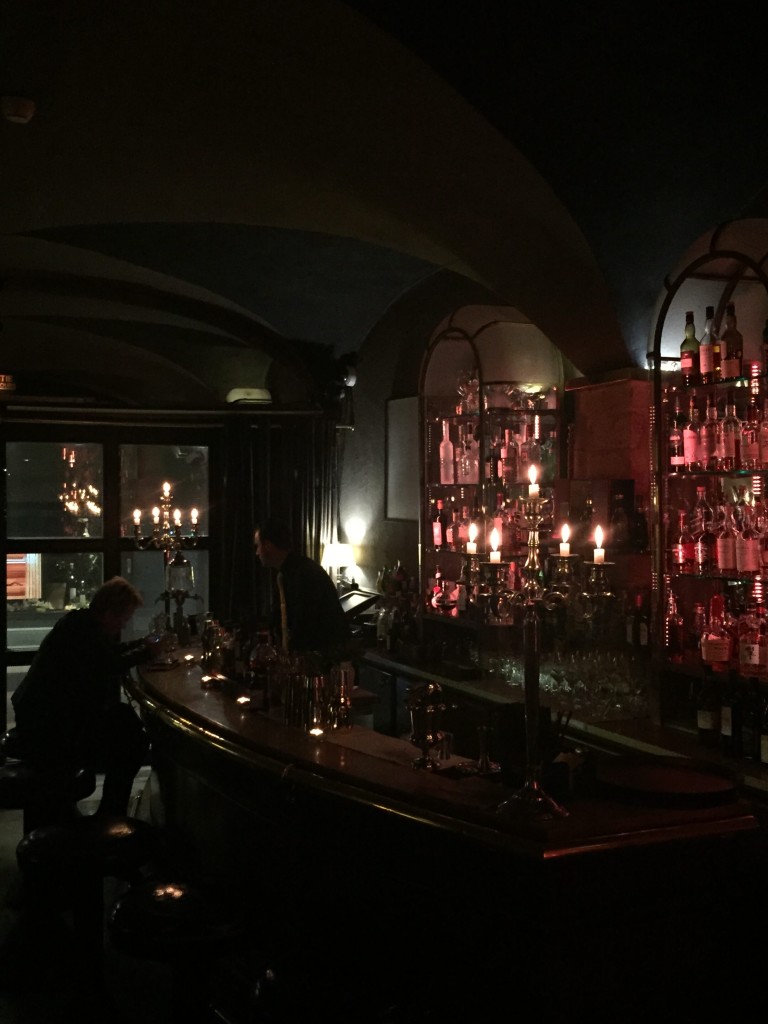 l’atmosphère des lieux change radicalement, à la nuit tombée, grâce à la lumière tamisée diffusée par les chandeliers posés sur chaque table.