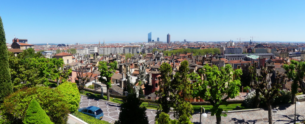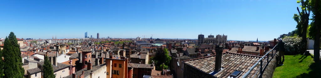 L’enchantement se poursuit, ensuite, avec l’époustouflante vue panoramique sur le Vieux Lyon (mais pas uniquement), qui se découvre depuis le belvédère du parking.