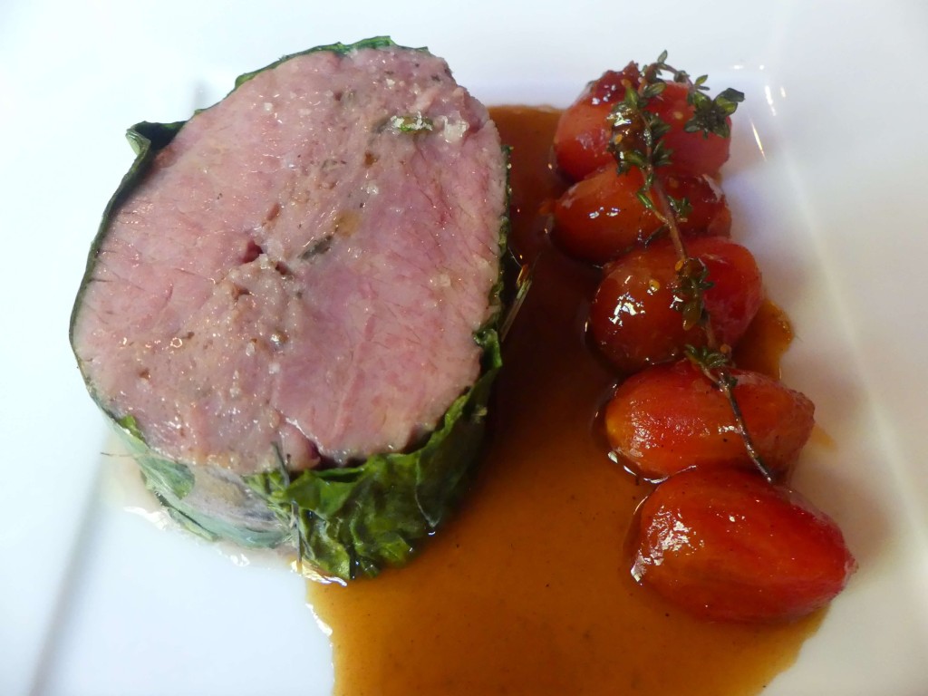Quant à l’agneau cuit (en cocotte) au foin, accompagné de ses tomates caramélisées au miel et à la vanille, il était tout simplement à damner un saint !
