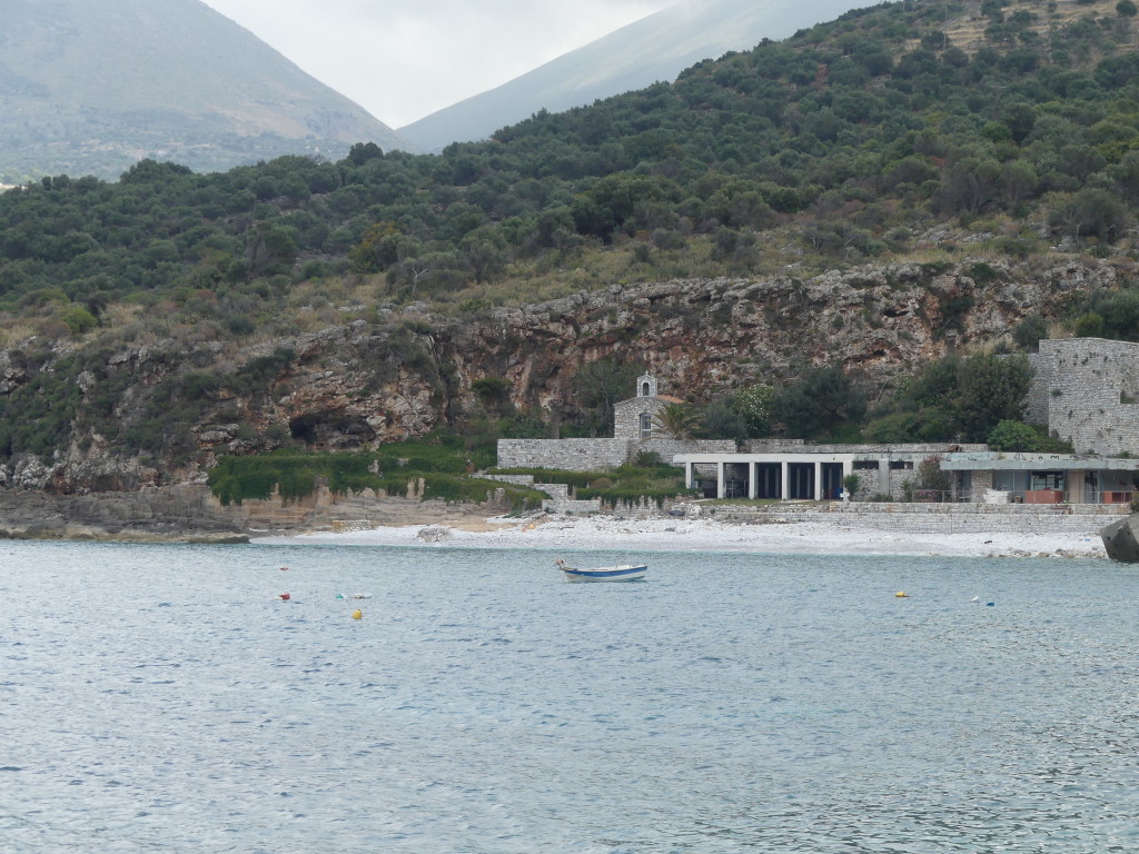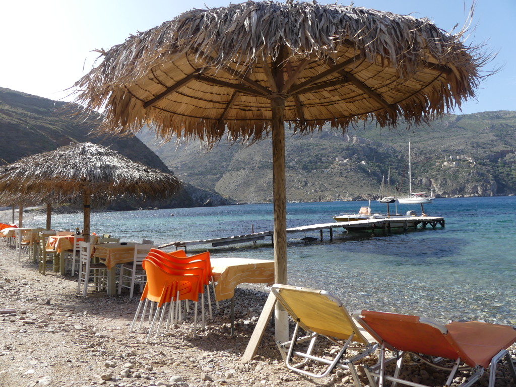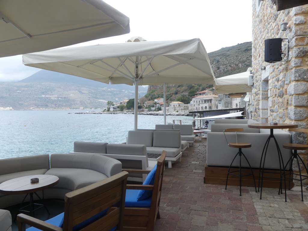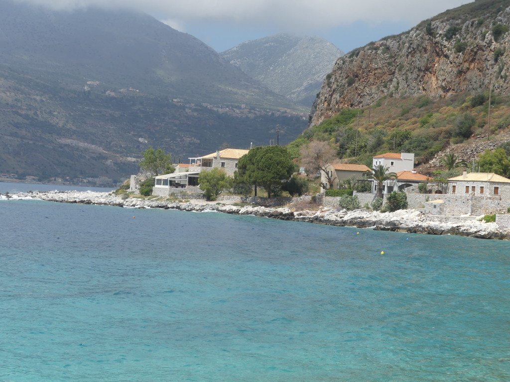 Tout au sud de la péninsule, celle de Porto Kagio, abritée dans une baie,  permet, au choix, de lézarder sur des transats ou de déjeuner dans des tavernes tout en profitant  de la charmante vue.