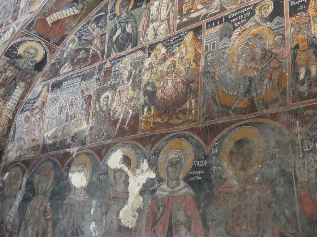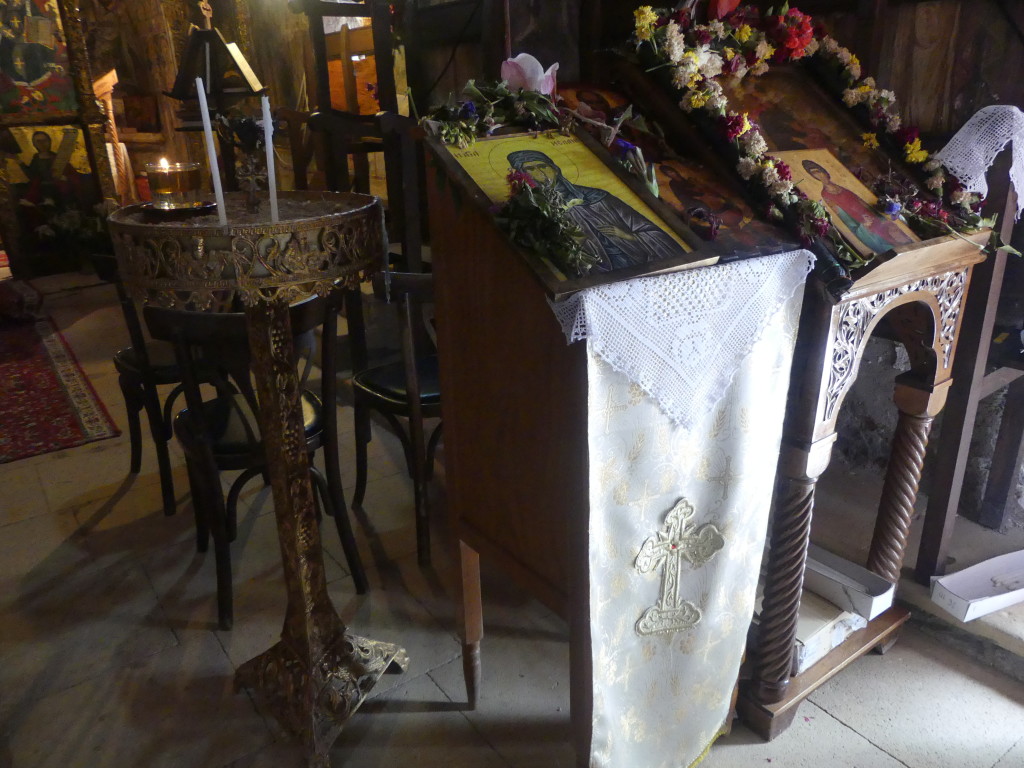 Outre son emplacement géographique inouï (lui permettant de bénéficier d’un panorama spectaculaire) cette église byzantine se distingue par ses fresques du 18 ème siècle représentant le Christ, les saints, outre les 12 signes du Zodiaque.
