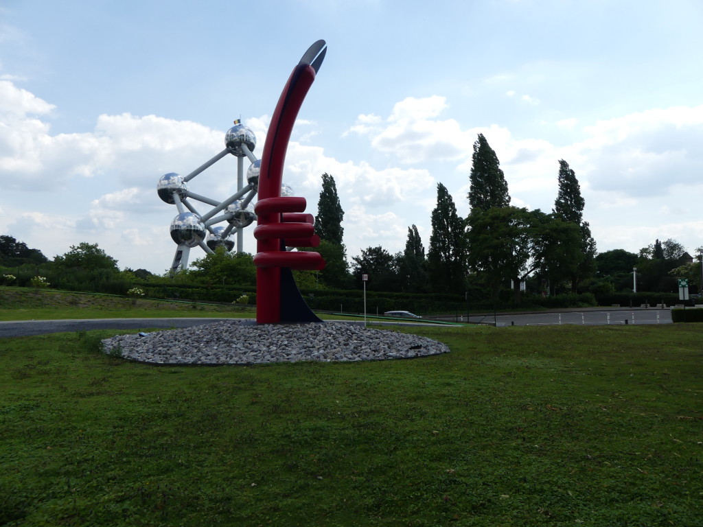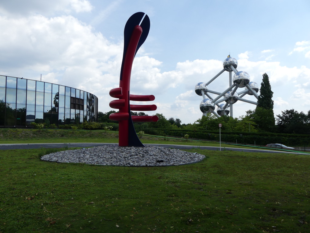 sculpture à l’entrée de l’ADAM, l’Atomium en arrière plan