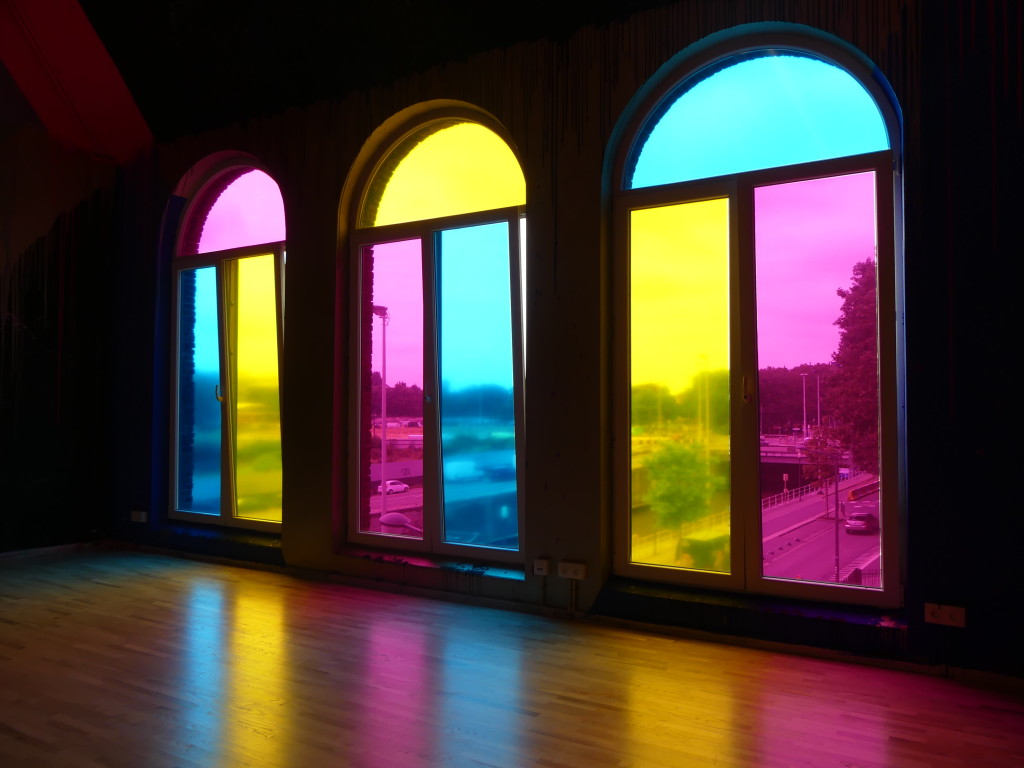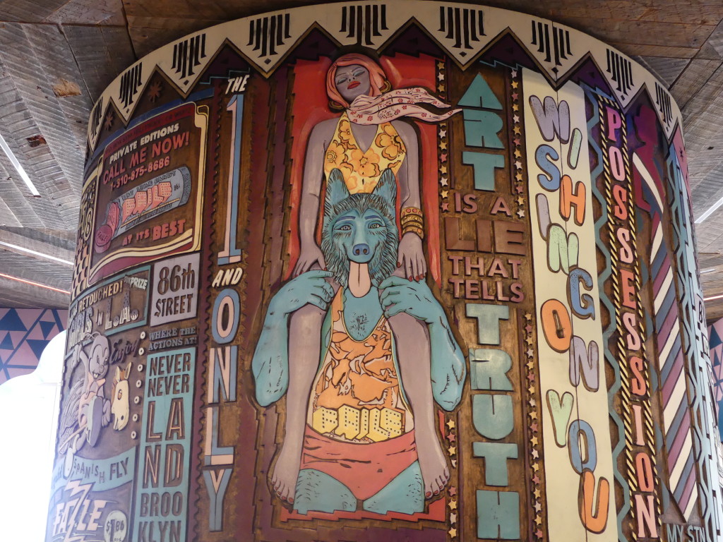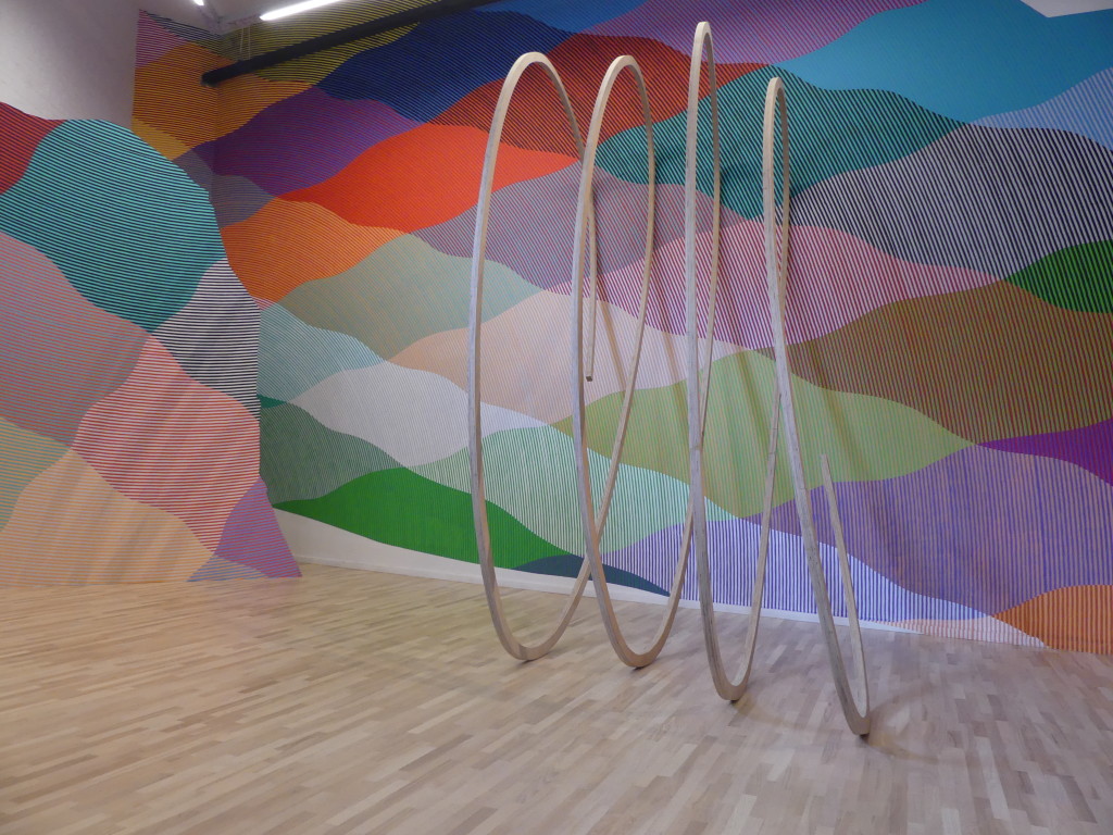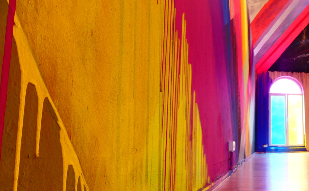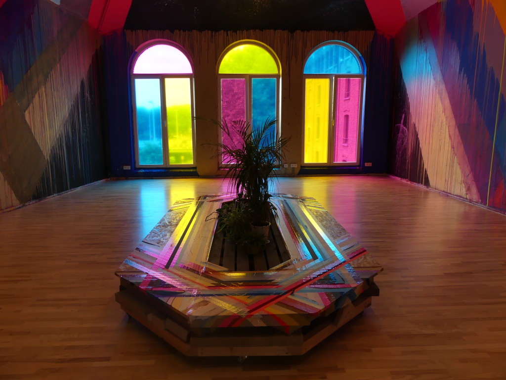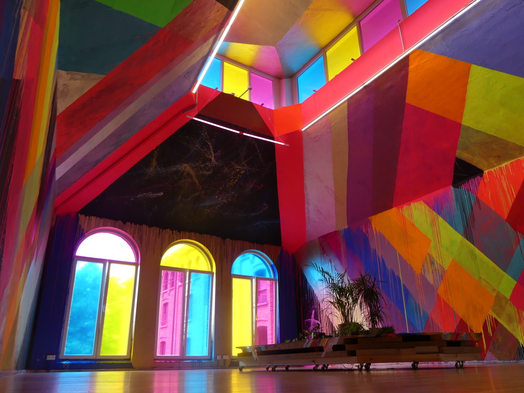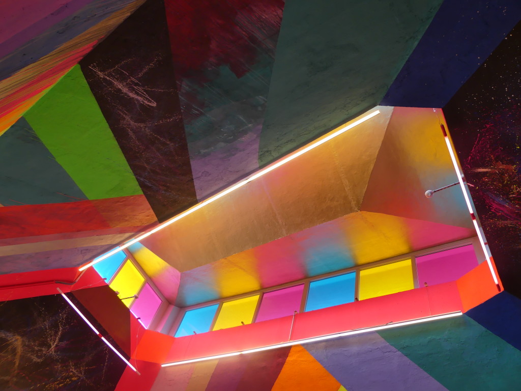 la pièce entièrement repeinte (du sol au plafond), par Maya Hayuk, avec des teintes pop, voire psychédéliques , m’a tout simplement laissée sans voix !