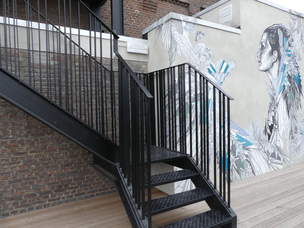 l’escalier d’accès au musée réalisé par l’architecte Jean Nouvel