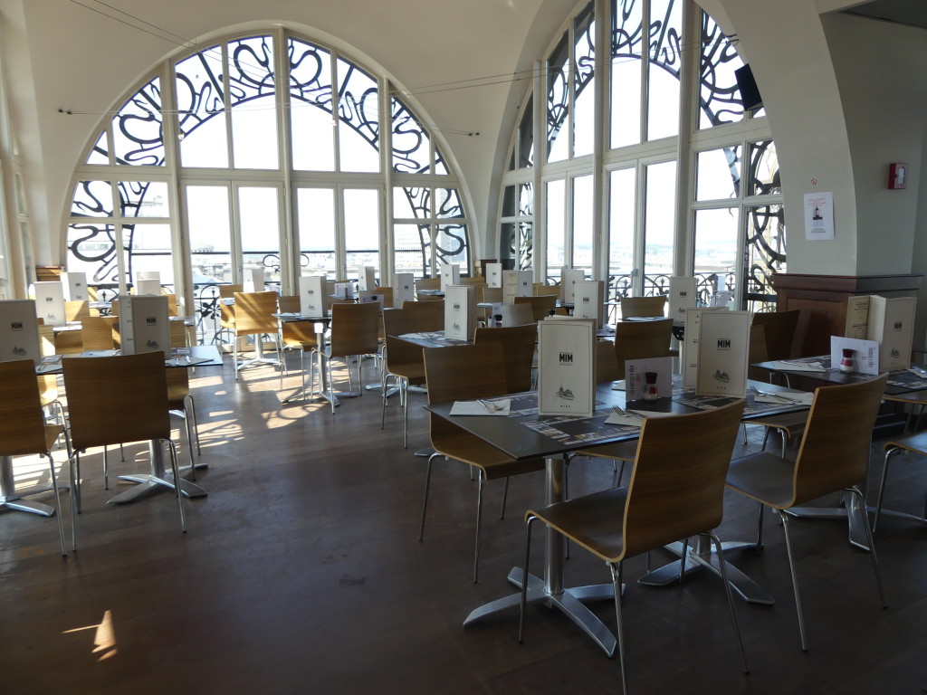Accessible par un ascenseur en fer forgé, son restaurant offre une salle intérieure