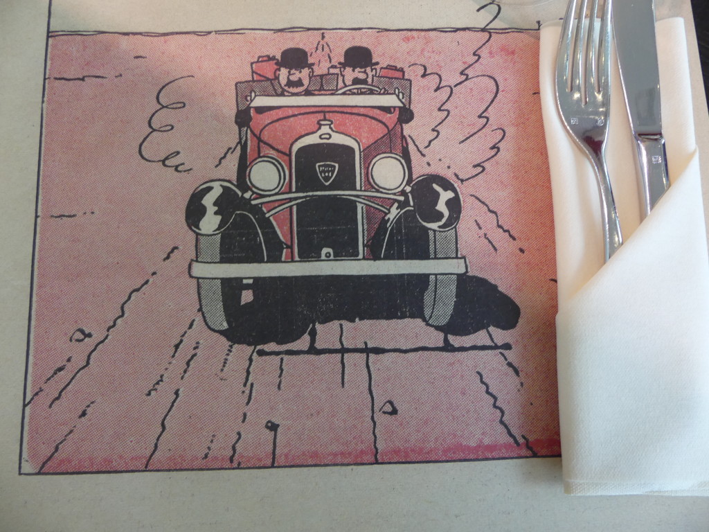 Dans un cadre faisant la part belle, du plafond aux sets de tables, aux personnages d’Hergé,