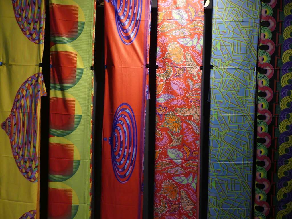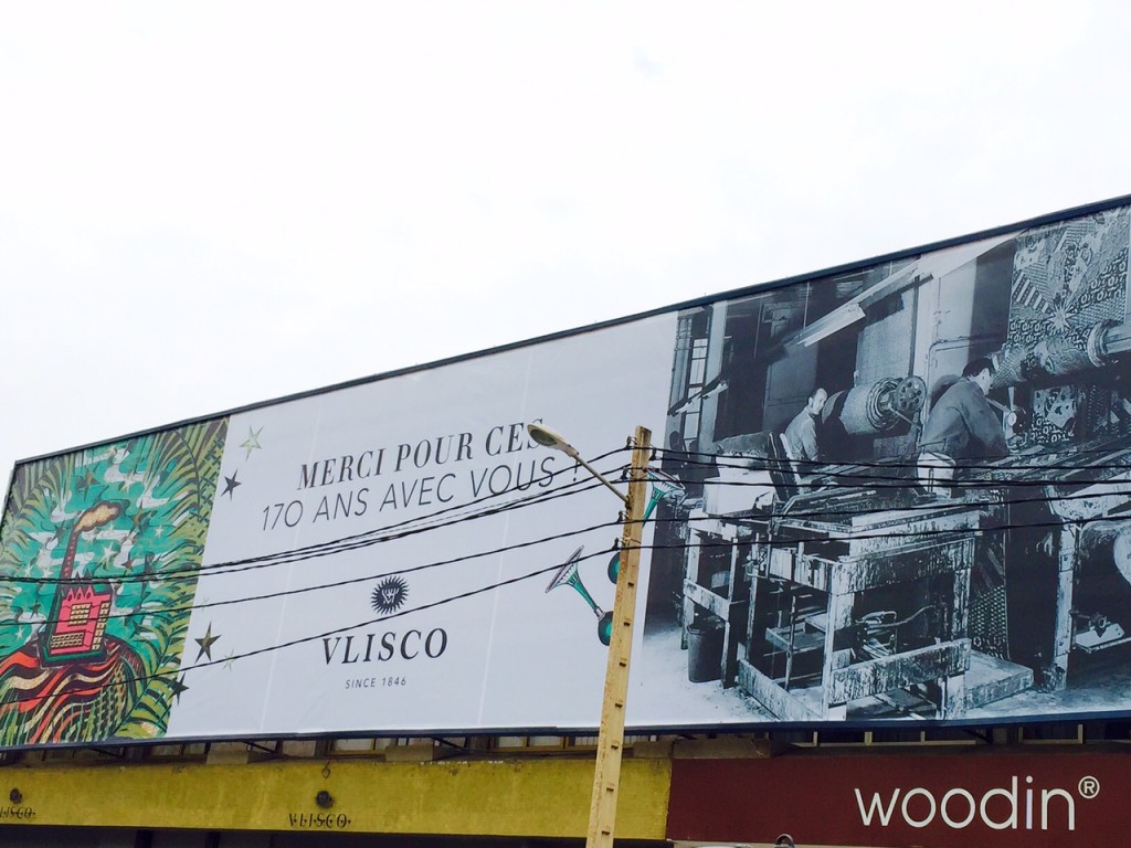 panneaux publicitaires des 170 ans de la firme au dessus de la boutique Vlisco, sise près du Grand Marché