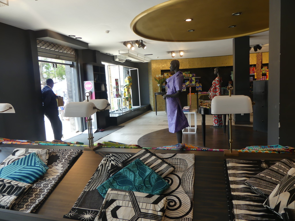 Véritable royaume du wax, le rez de chaussée ne manquera pas de vous donner le tournis tant l’offre des superbes pagnes (qu’ils soient colorés ou non, aux motifs classiques ou aux dessins davantage empreints de modernité) proposés à la vente est vaste.