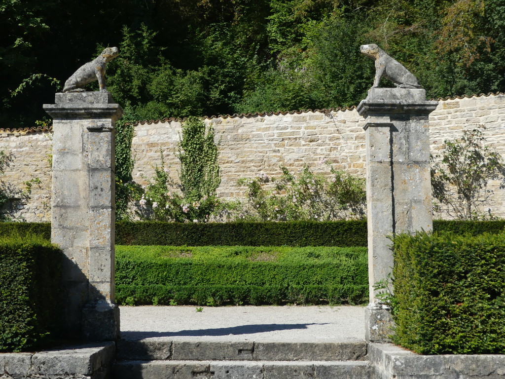 Les deux sculptures de chiens que vous apercevrez sur votre gauche en vous rendant à l’église abbatiale, marquent l’emplacement de l’ancien chenil ou étaient gardés les chiens des ducs de Bourgogne.