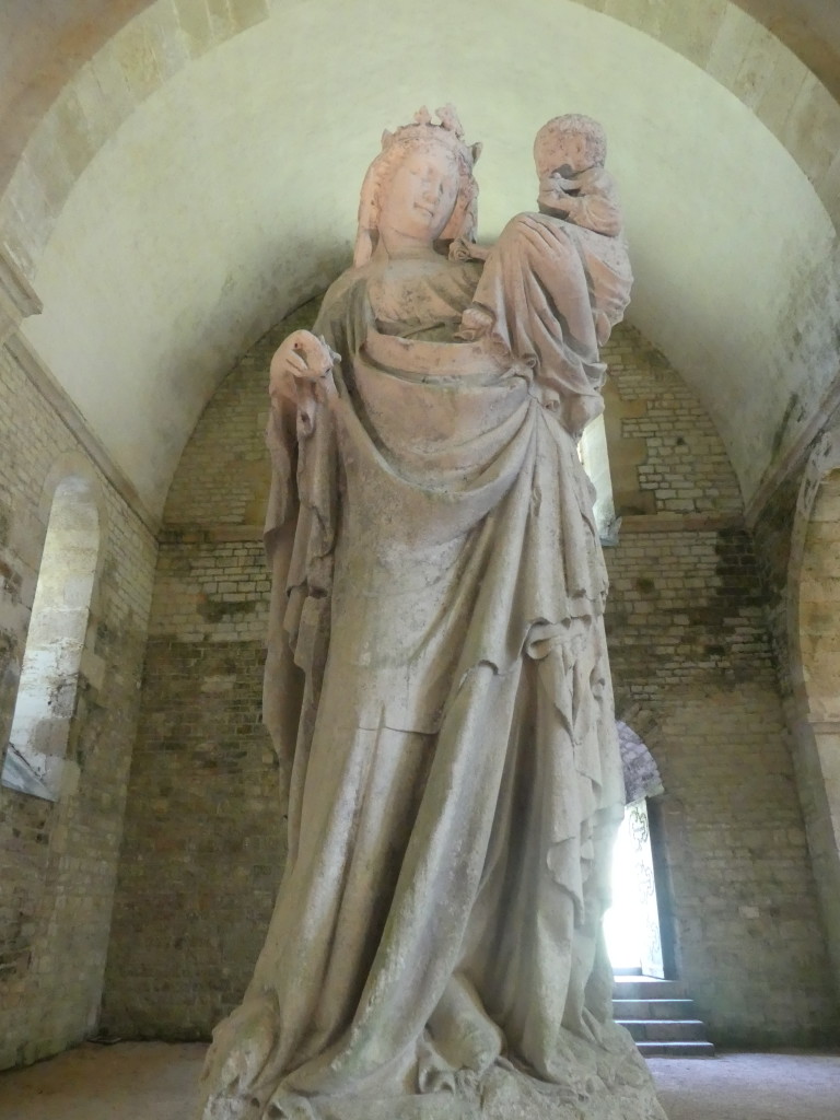 Si tout dans son architecture bannit le superflu et invite au recueillement du visiteur ( façade sobre, ornementation dépouillée, chapiteaux peu sculptés et faible luminosité), j’ai pourtant été séduite par la beauté de sa statue de la Vierge à l’Enfant également appelée  Notre dame de Fontenay,