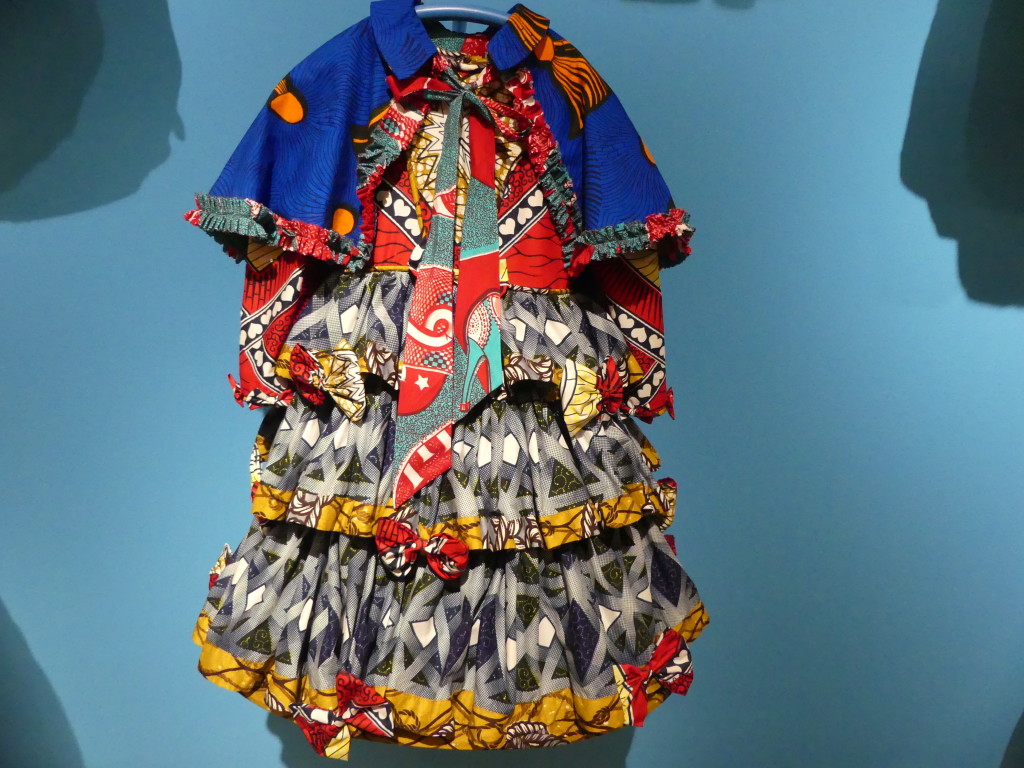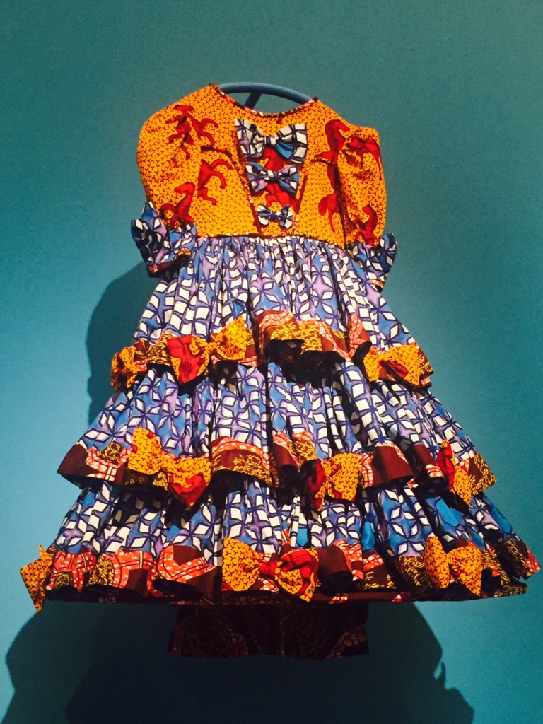 La Richesse avec les 15 robes en wax accrochées sur un mur de Little Rich Girls ;