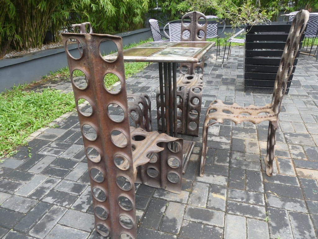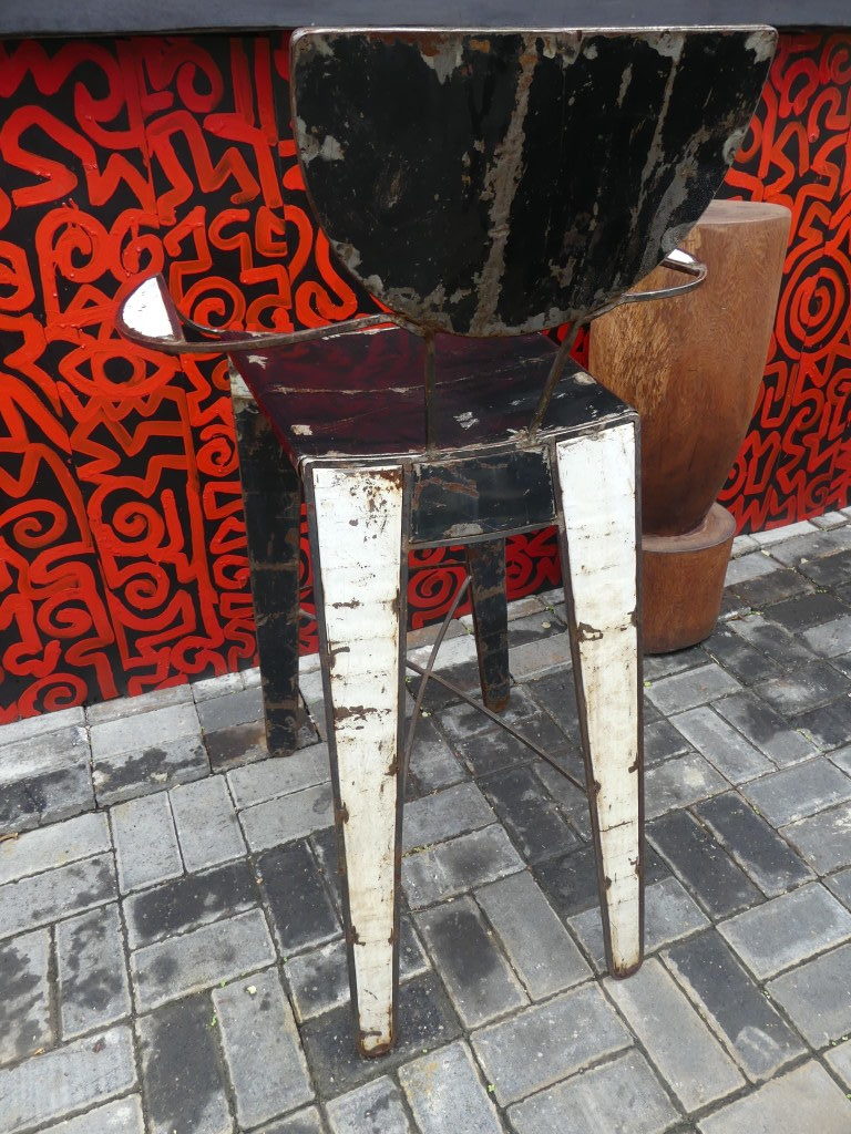 des chaises, créées à partir de métal recyclé, de l’atelier de feu l’artisan sénégalais Baay Xaaly SeneÂ