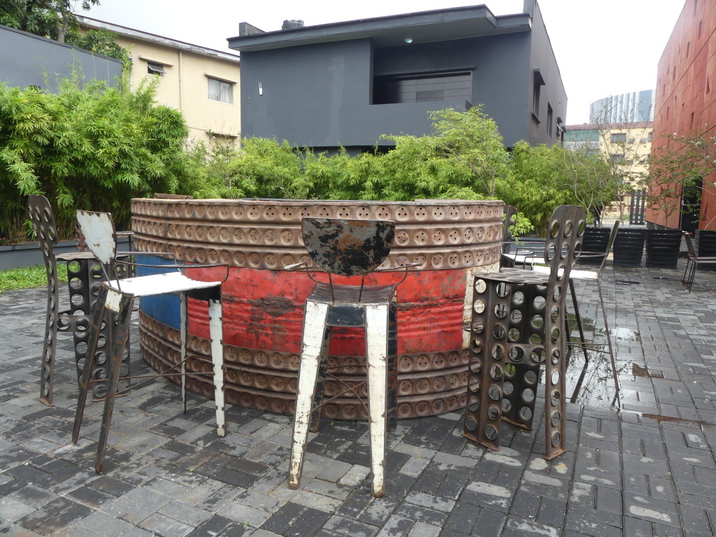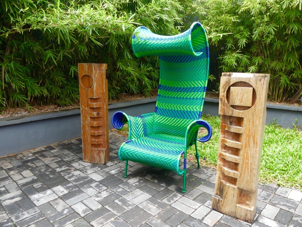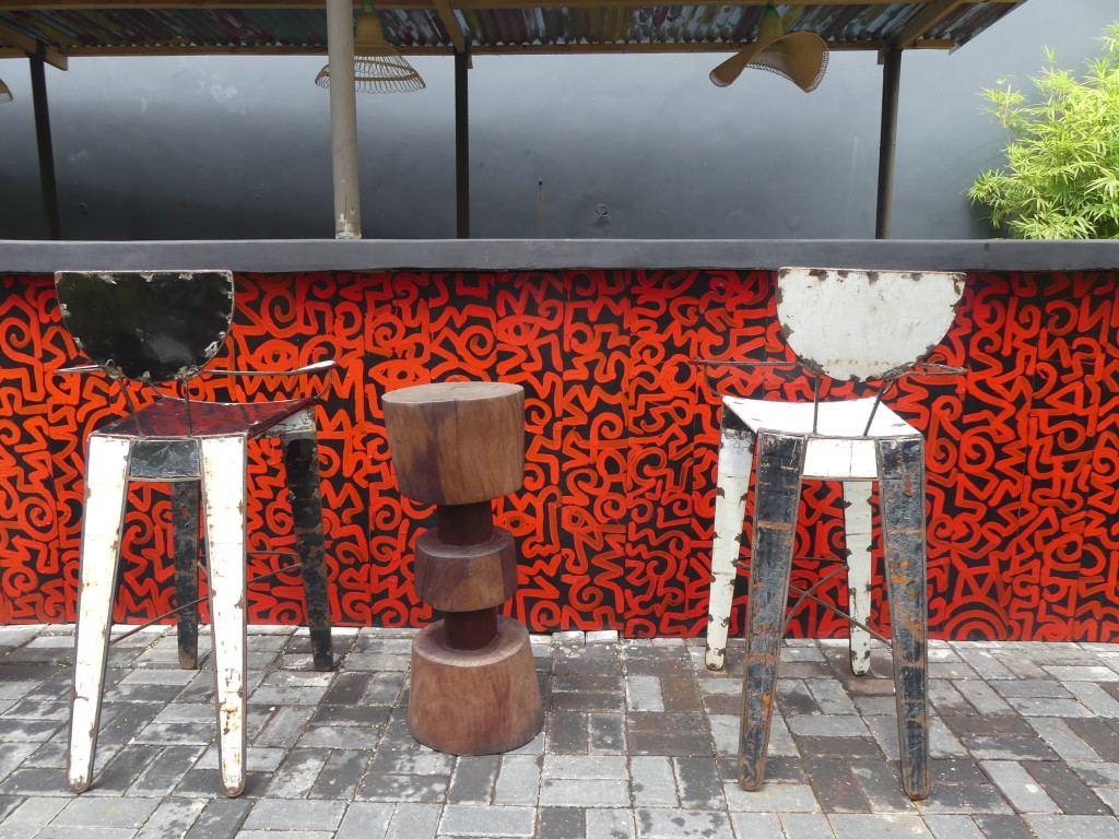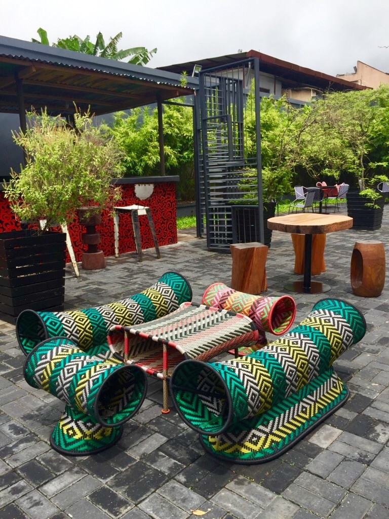 Qu’il s’agisse des atypiques chaises du designer malien  Cheick Diallo (en rouge sur la photographie)