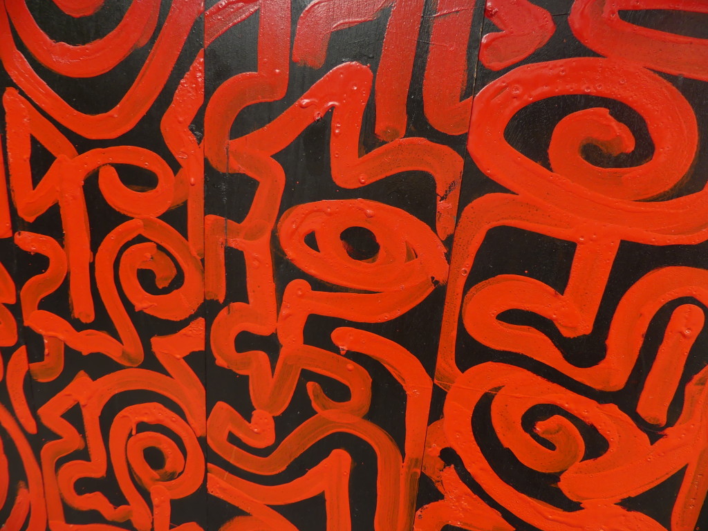 un tableau accroché dans le couloir reliant la galerie au Nok