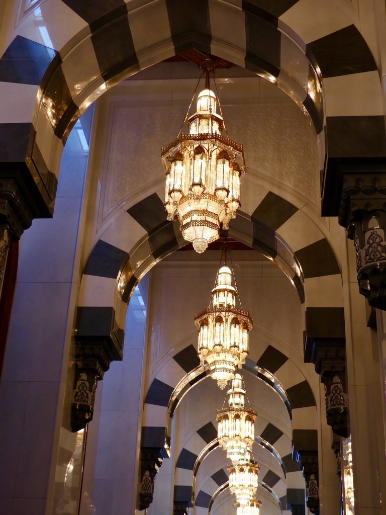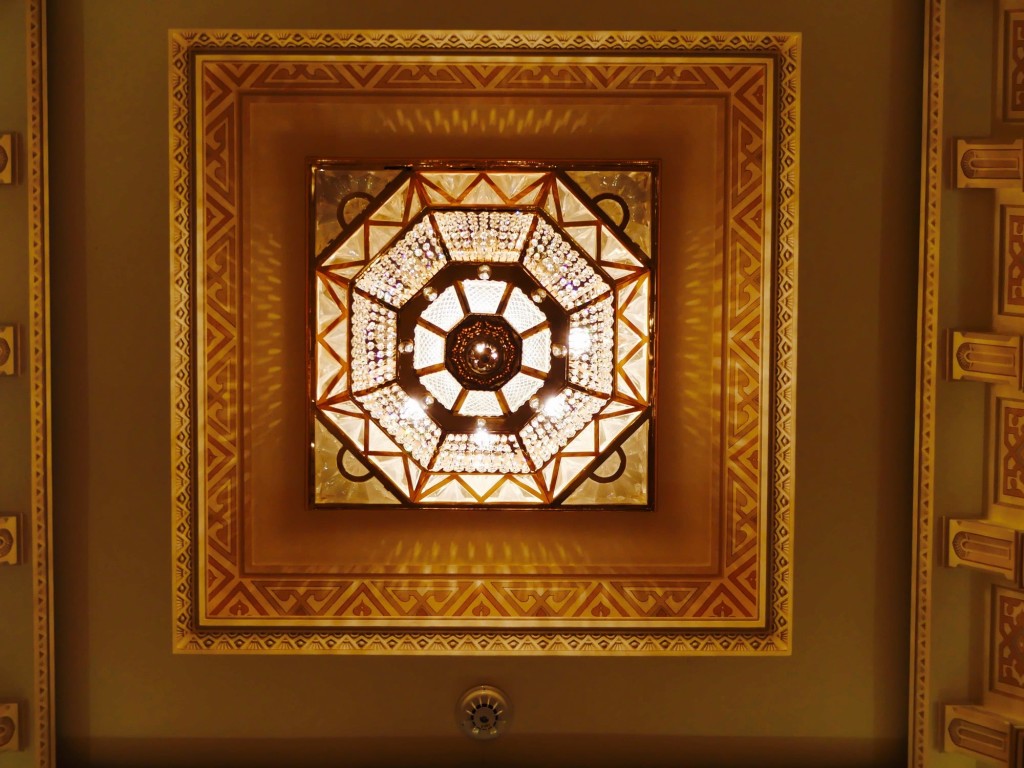 le spectaculaire  lustre, en cristal Swarovski, de la salle de prière réservée aux hommes