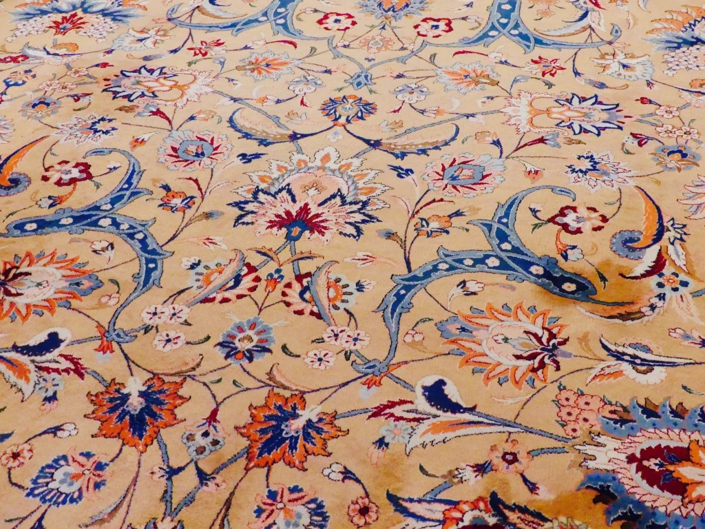 au magnifique tapis persan, tissé, pendant 4 ans, à la main, recouvrant le sol