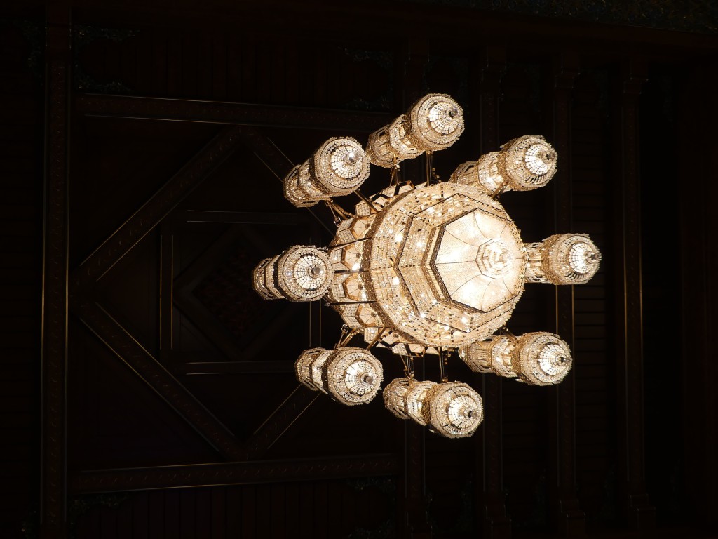 A ce titre, impossible de ne pas se laisser subjuguer par l ‘extraordinaire chandelier central, serti, par ailleurs, d’or 24 carats, aux dimensions hors norme :