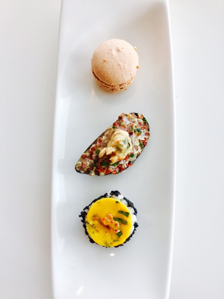 amuse bouche : macaron de foie gras, moule et maki