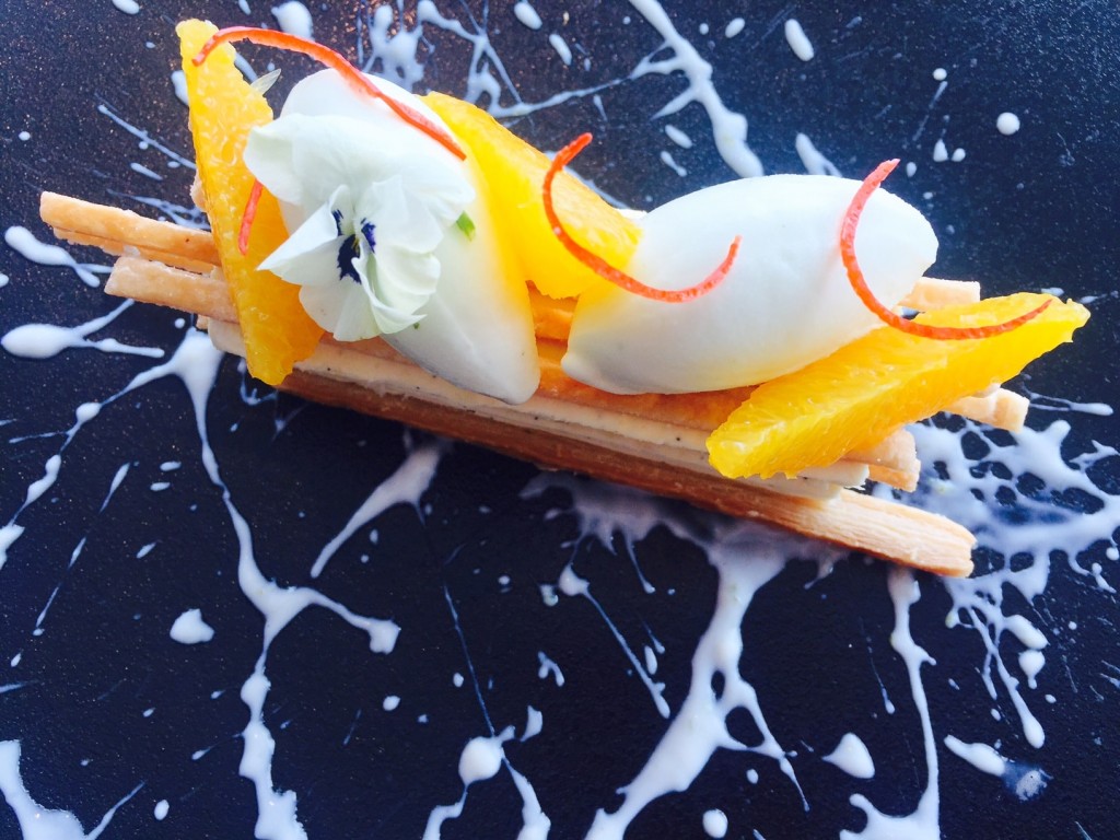 au croustillant mille-feuille parfumé à la vanille de Tahiti, ses agrumes et son sorbet yaourt citron vert grâce auquel j’ai terminé mon déjeuner en beauté.