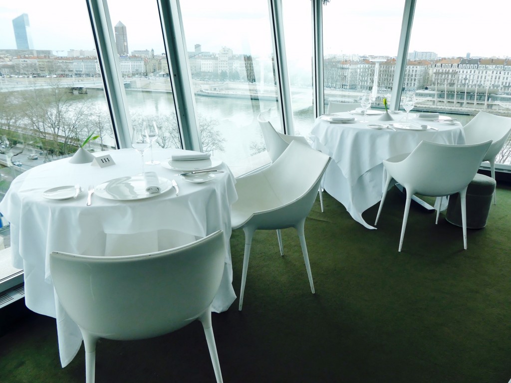 Offrant un spectacle d’exception sur Lyon (et en l’occurrence son incontournable place Bellecour) ainsi que sur le Rhône, la lumineuse salle blanche au design épuré est tout simplement saisissante de beauté.