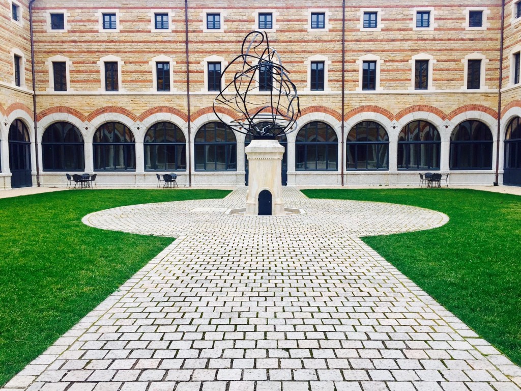 sculpture de l’artiste Pablo Reinoso installée dans le jardin du cloître