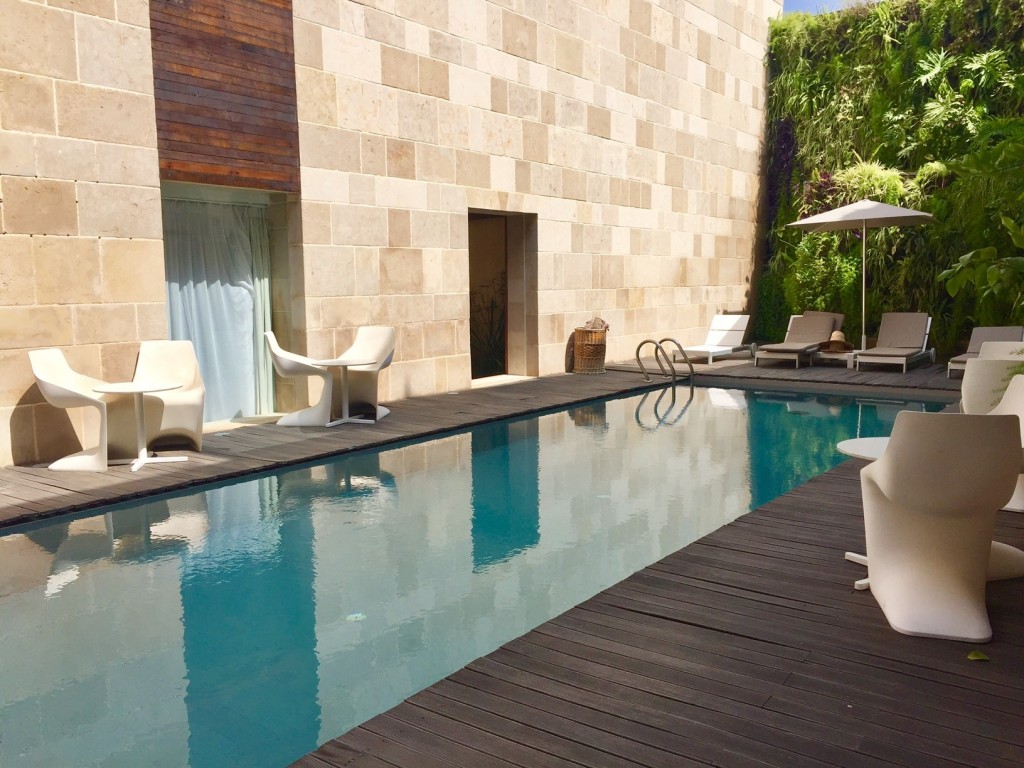 En attestent : sa décoration travaillée, son bassin à jets d’eau, sa piscine