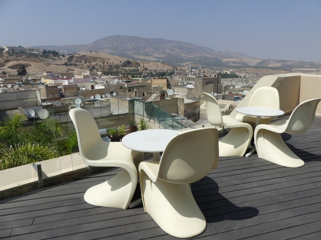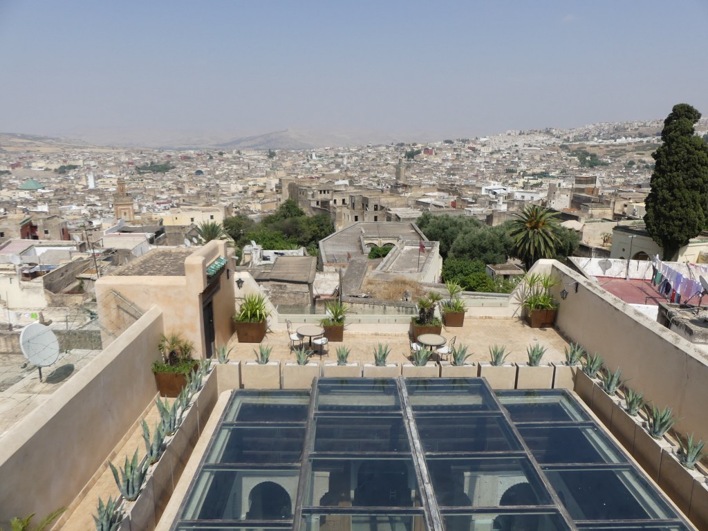 Y faire une halte pour siroter, aux heures les plus chaudes de la journée, thé à la menthe ou jus d’orange fraîchement pressé tout en jouissant d’un panorama d’exception sur les toits de Fes El-Bali, constituera, à n’en point douter, une mémorable pause.
