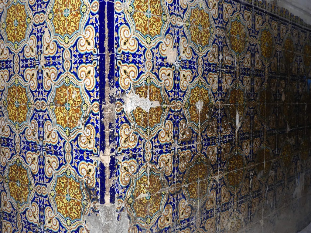 des murs peints et des portes extrêmement travaillées derrière lesquelles se cachent des hammams traditionnels de quartier .