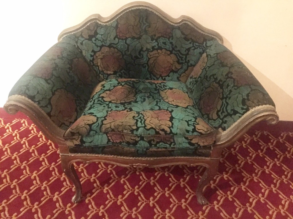 Velours, damas, mobilier d’époque, salles de bain en marbre italien, lustres en verre de Murano, Â