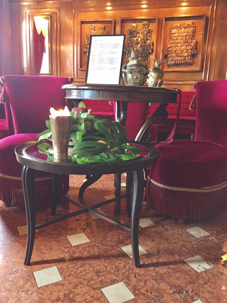 La découverte du lobby, en ce qu’elle préfigure la décoration intérieure de l’hôtel, donne, à ce titre,  immédiatement le ton.