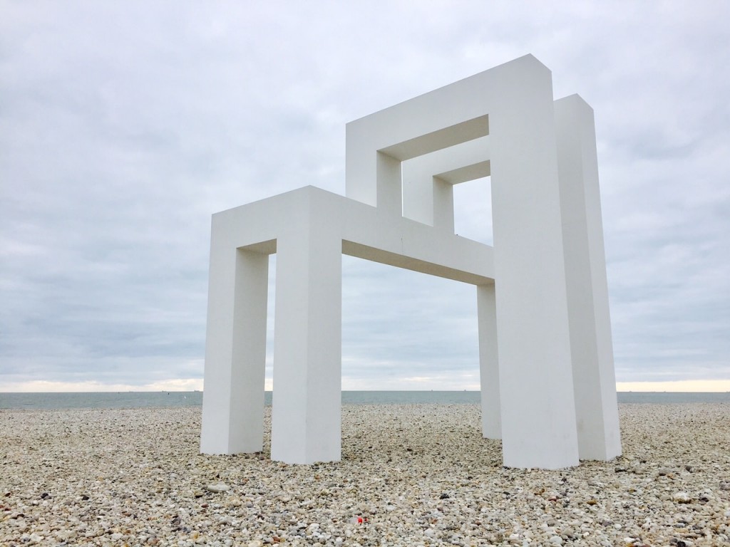 La géométrique Up 3 de Sabina Lang et Daniel Baumann se dressant sur la plage,