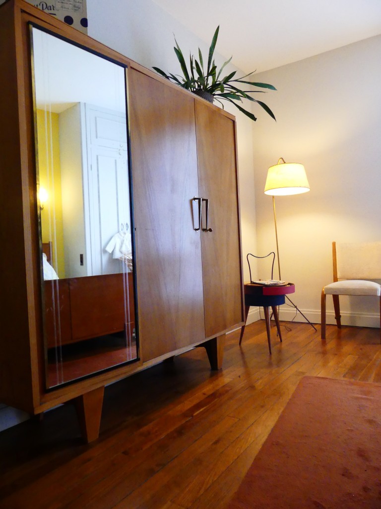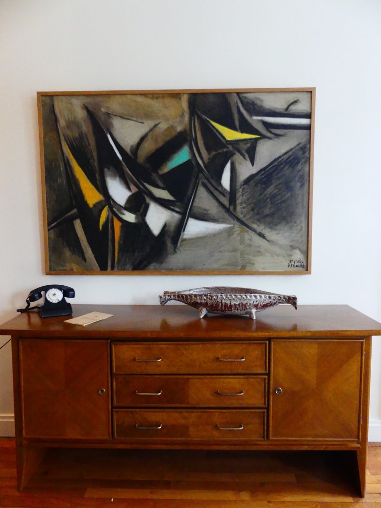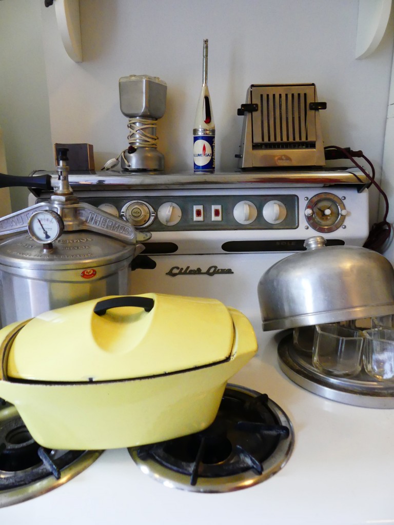 La modernité des lieux se traduit également dans le mobilier René Gabriel choisi pour habiller les pièces outre l’équipement de la maison : frigidaire, aspirateur, couverture chauffante, lave linge, gazinière, cocotte : autant d’éléments dont l’usage est encore aujourd’hui d’actualité.
