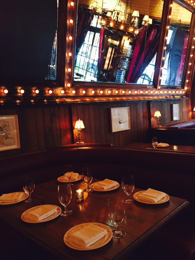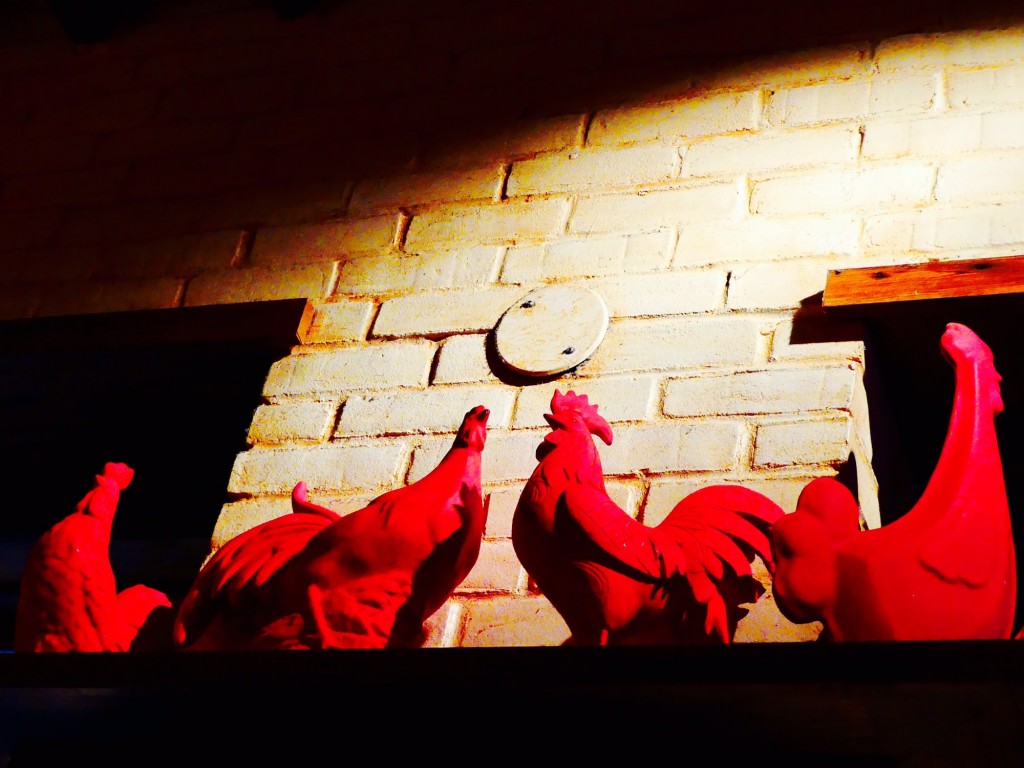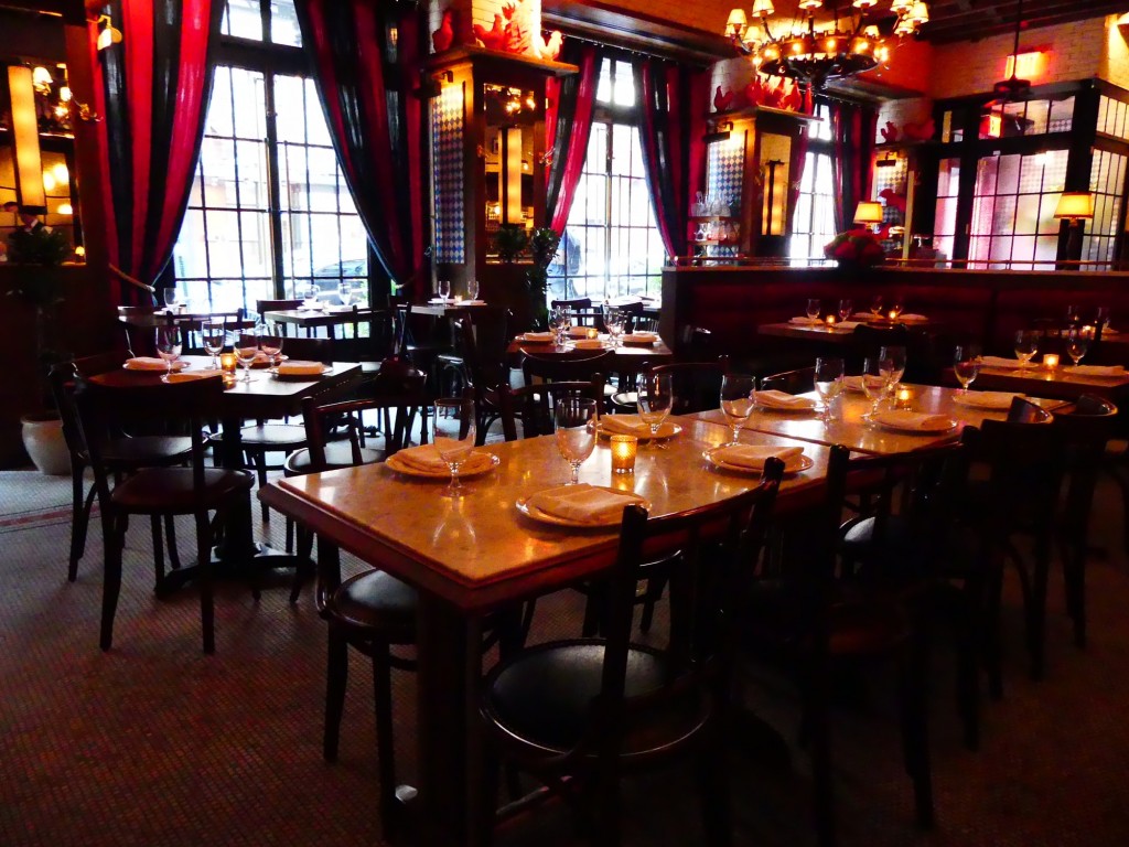 Banquettes en cuir rouge, chaises en bois, sculptures de coqs, chandeliers circulaires et multiples miroirs vous donnent ainsi le sentiment de pénétrer dans un séduisant bistro parisien.