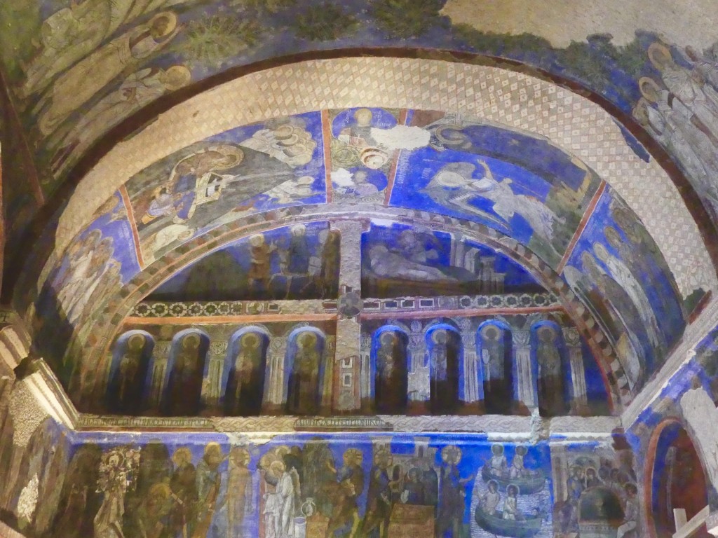 Austères de prime abord, ces sanctuaires abritent, contre toute attente, de superbes fresques byzantines colorées, aujourd’hui objet de restaurations, évoquant des scènes bibliques (Nativité, entrée dans Jérusalem, Dernier Souper) ou représentant des portraits de Saints tels Basile ou Georges.