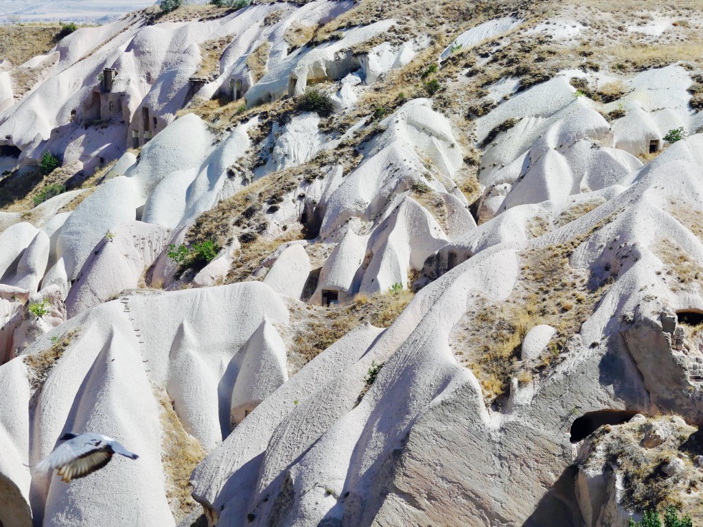 l’insolente majesté des vallées, parées de mille nuances de blanc, rouge ou rose et au milieu desquelles affleurent vignes, habitats, hotels (dont l’incroyable Museum Hotel) ainsi que pigeonniers creusés dans le tuf, se révèle autrement plus saisissante.
