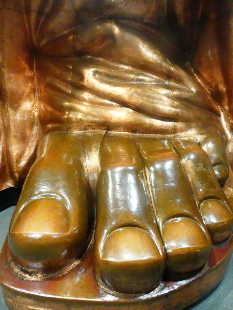 De l’immersion dans le ventre du monument, je garde ainsi en mémoire les découvertes de sa torche originelle, d’une copie du visage, supposé être celui de la mère de l’artiste, outre d’un pied de la Statue.