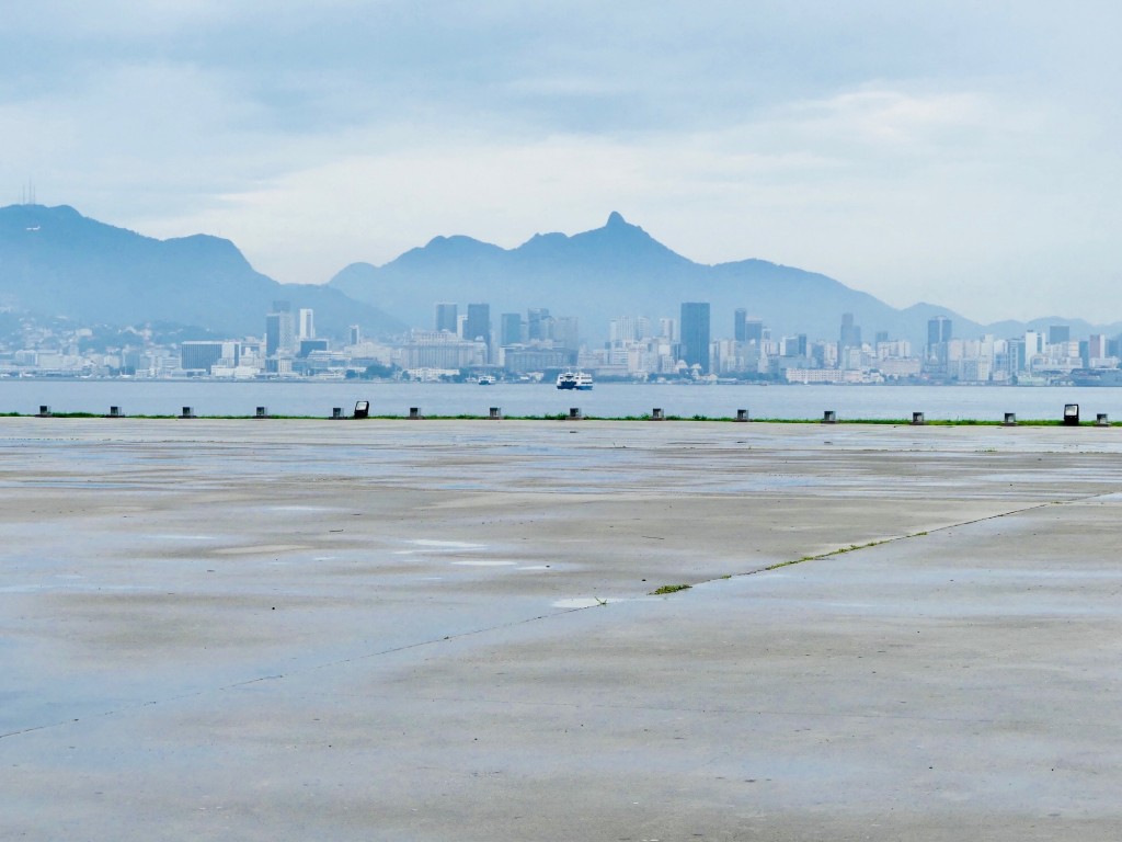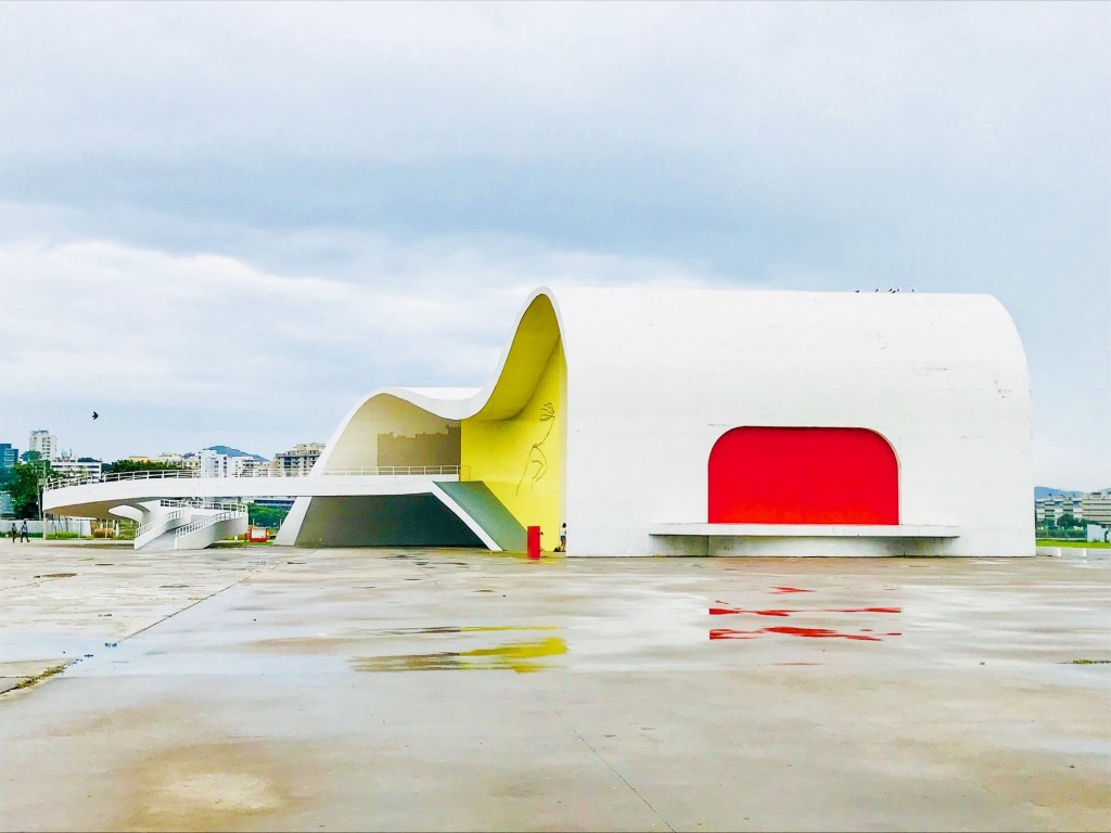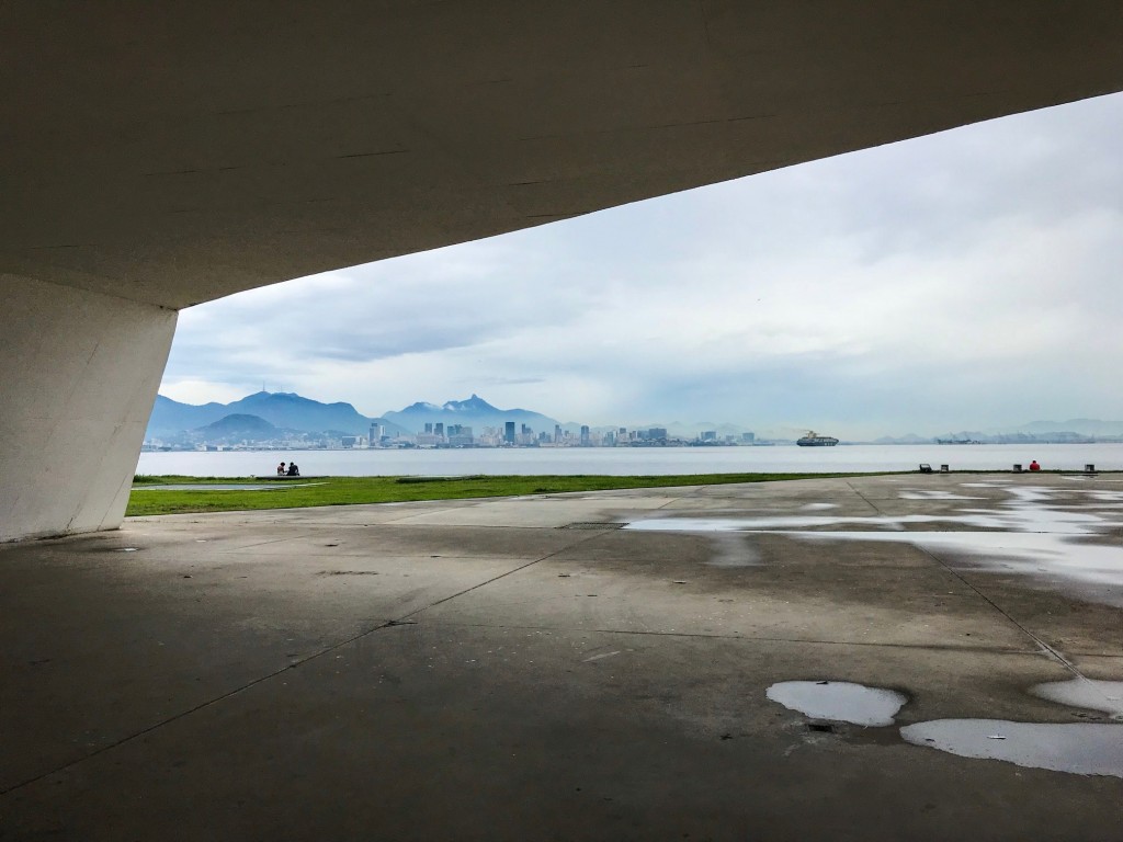 vues sur la skyline de Rio depuis l’esplanade accueillant le Teatro Popular et la Fondation Niemeyer