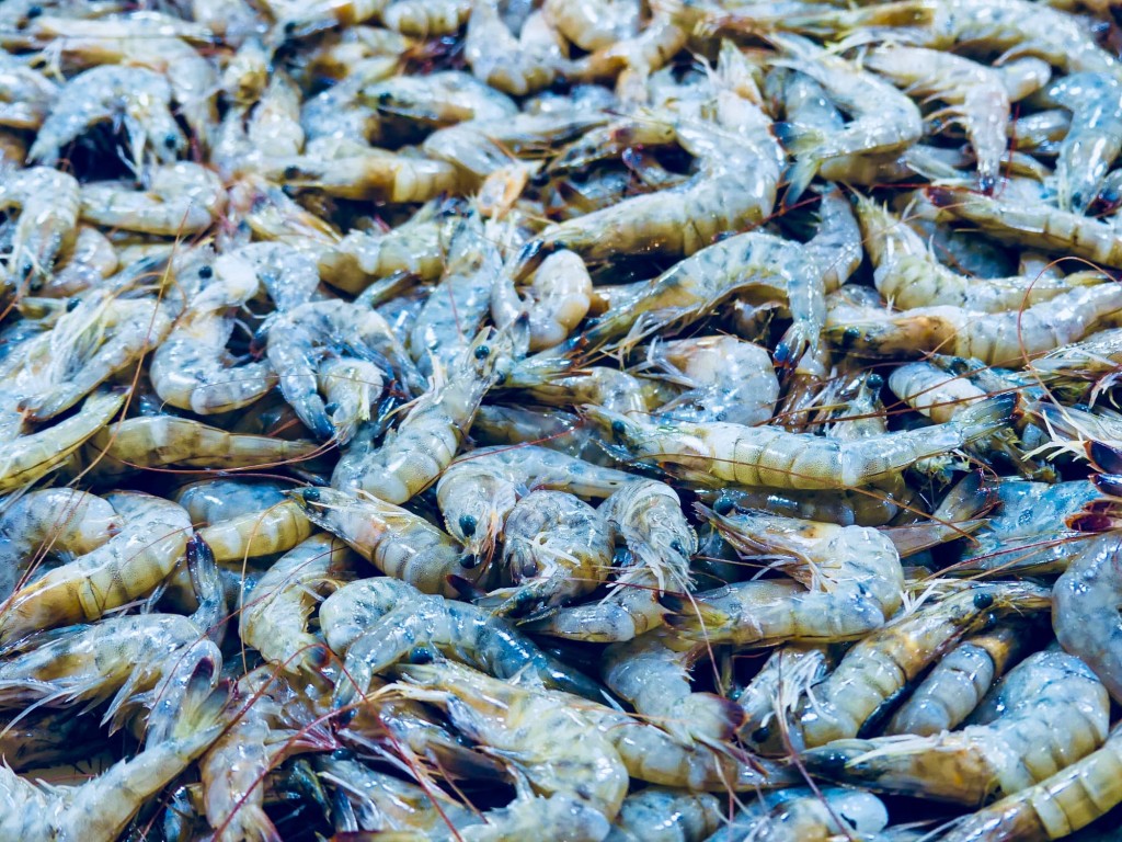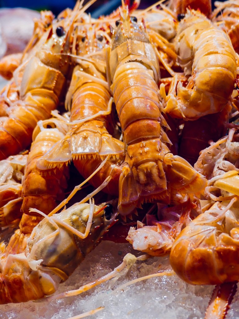 étal de crevettes
