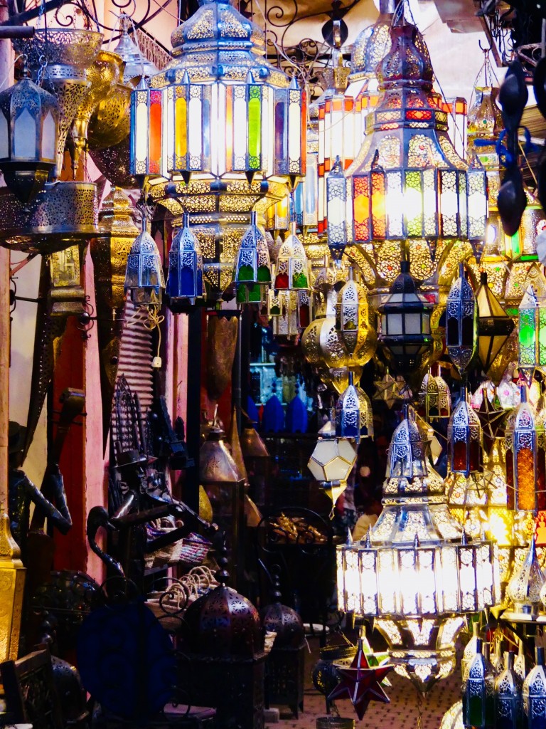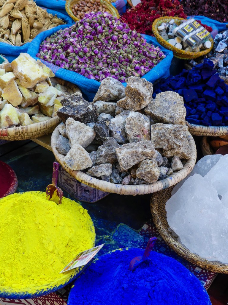 Magnifiques lieux de rencontres investis par des commerçants regroupés par métier dont les étals, fussent ils de fruits, légumes, épices, pâtisseries, accessoires, textiles, poteries ou babouches, constituent une réelle invitation au Voyage.