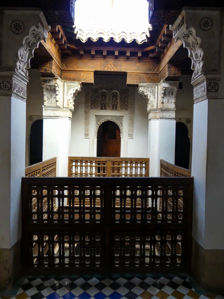 Avec son bassin aux ablutions, sa salle de prière, son décor constitué de zelliges, marbre et bois outre les centaines de chambres aménagées dans les étages, pour, en leur temps, accueillir de nombreux étudiants, cette école coranique, édifiée au 16 eme siècle dans le style arabo-andalou, rappelle la majestueuse medersa Attarine de Fes.