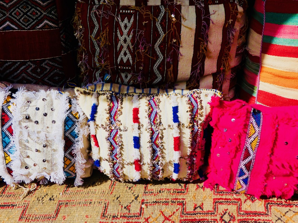 Et dans le travail d’orfèvre réalisé par les artisans façonnant fer et cuivre, transformant fibres végétales en superbes vanneries, teignant soies et laines sans oublier ceux confectionnant tapis bouchraouites , kilims berbères et coussins d’exception se lit toute l’époustouflante richesse des savoir-faire marocain.