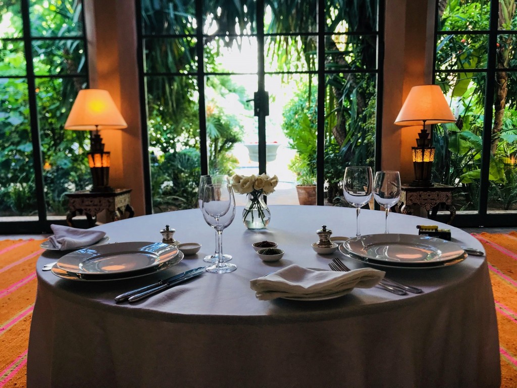 S’ouvrant sur le patio et les jardins, la salle à manger de l’Hotel Marrakech (mentionné plus haut) est un somptueux écrin où l’on prend place, que l’on soit résident de l’établissement ou non ( il convient alors d’effectuer une réservation préalable d’au moins 24 heures), avec plaisir.