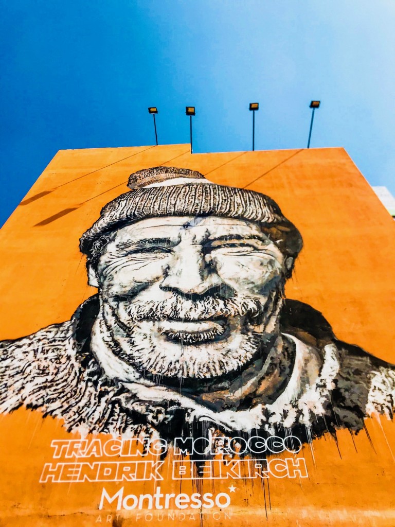 Aziz, maçon marocain dont le portrait fait face à la gare de Marrakech