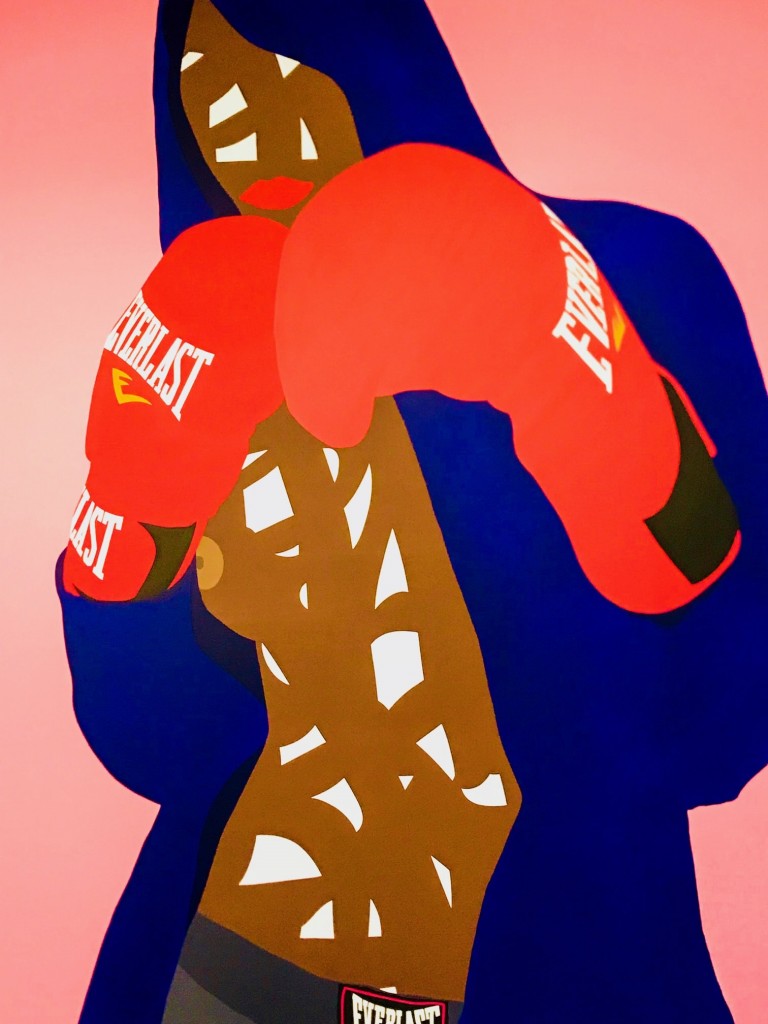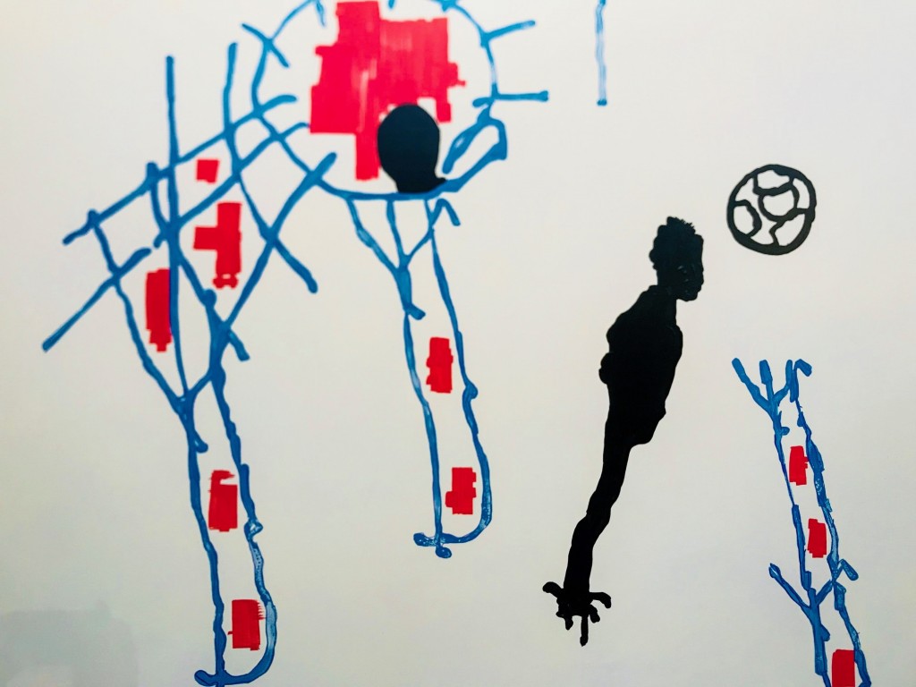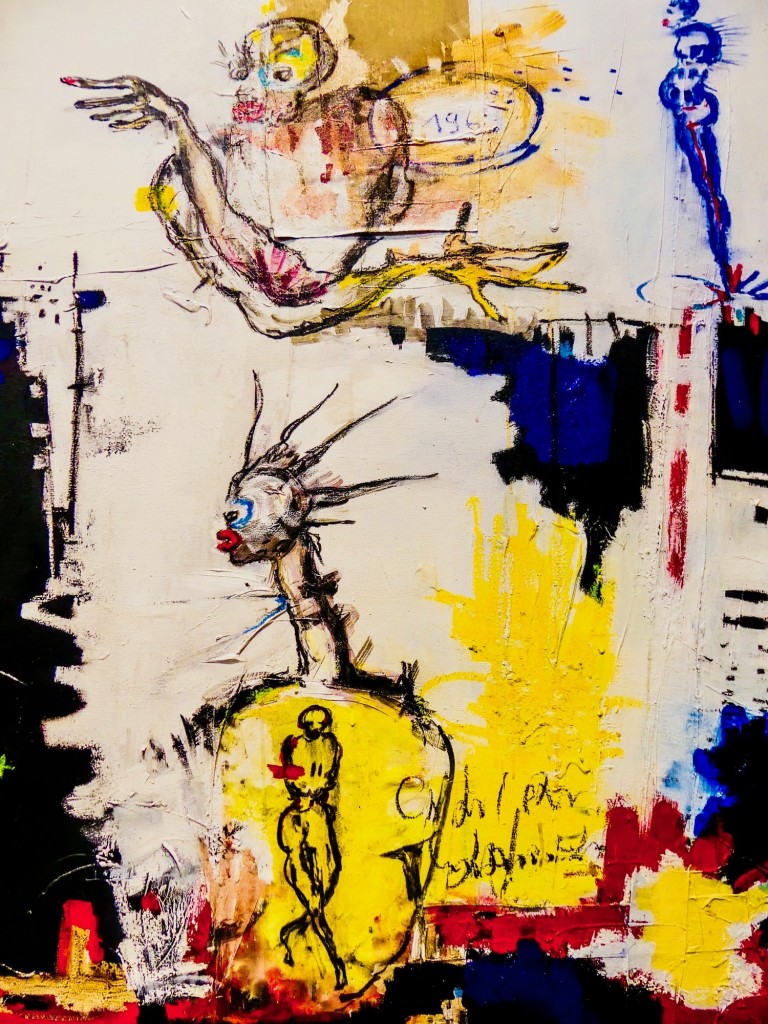 Reconnaissable à ses peintures mettant en lumière, sur fond blanc, des personnages, sans visages, aux traits d’une simplicité enfantine totalement assumée mais également à l’usage de la couleur, ici, réduite à sa plus simple expression.