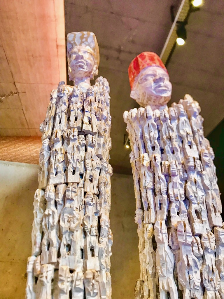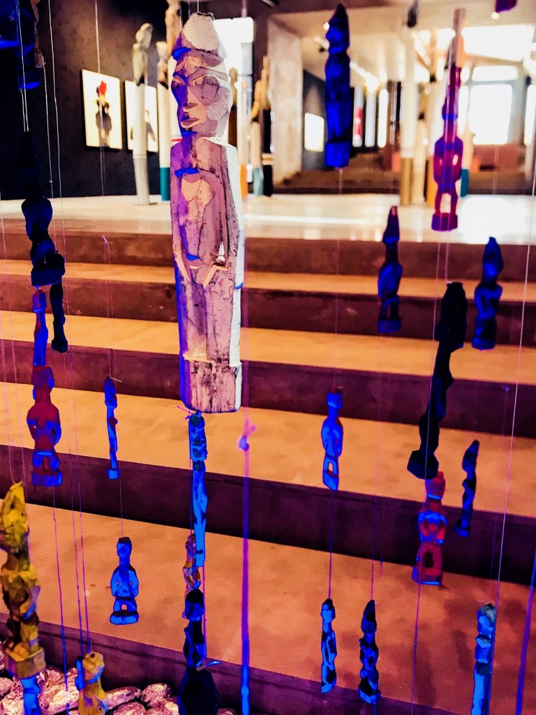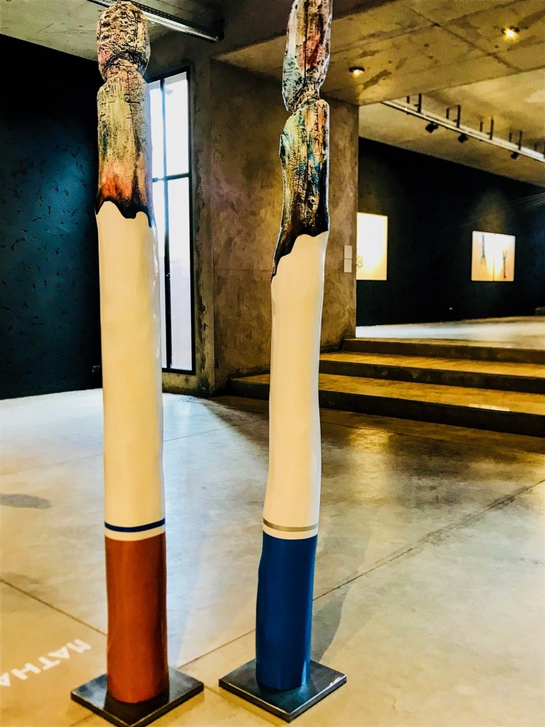 Avec les totems du peintre Nathanael Vodouhé, prenant l’apparence d’une cigarette se consumant, l’artiste béninois s’interroge sur nos addictions et évoque, en creux, la destruction de l’ Homme par lui même.