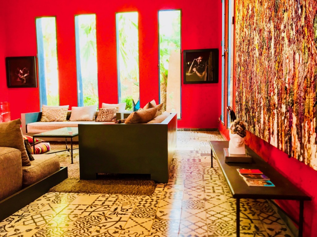 l’un des salons du Jardin Rouge, en arrière plan une oeuvre de Wahib Chehata
