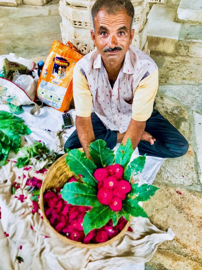 vendeur de fleurs à l’entrée du temple de Ranakpur