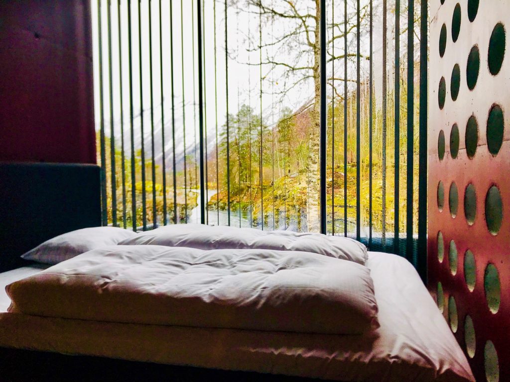 Déjà extraordinaire, l’intimiste tête à tête avec la Nature se révèle encore plus spectaculaire une fois le seuil des  atypiques cocons du Juvet Hotel franchis.